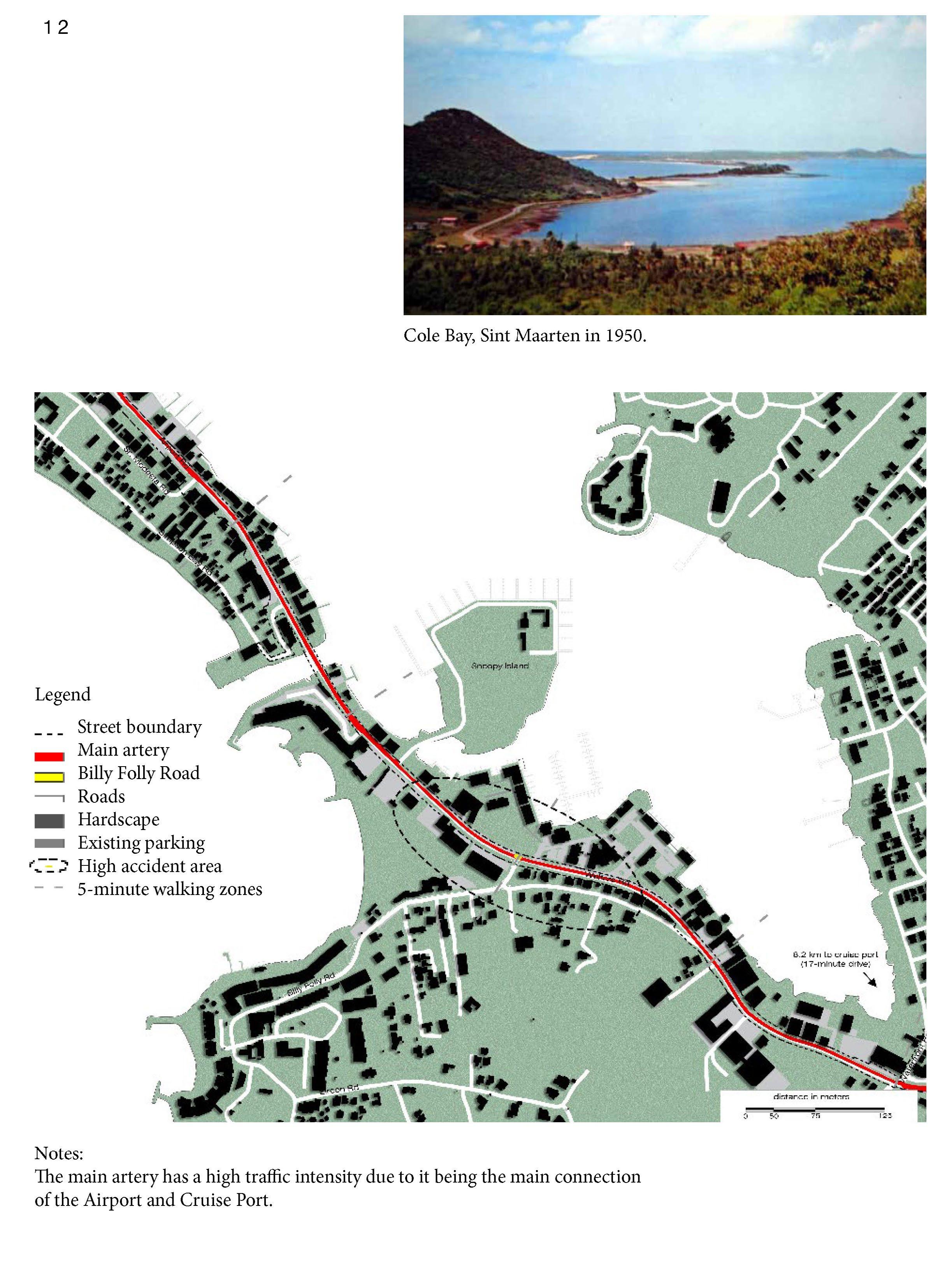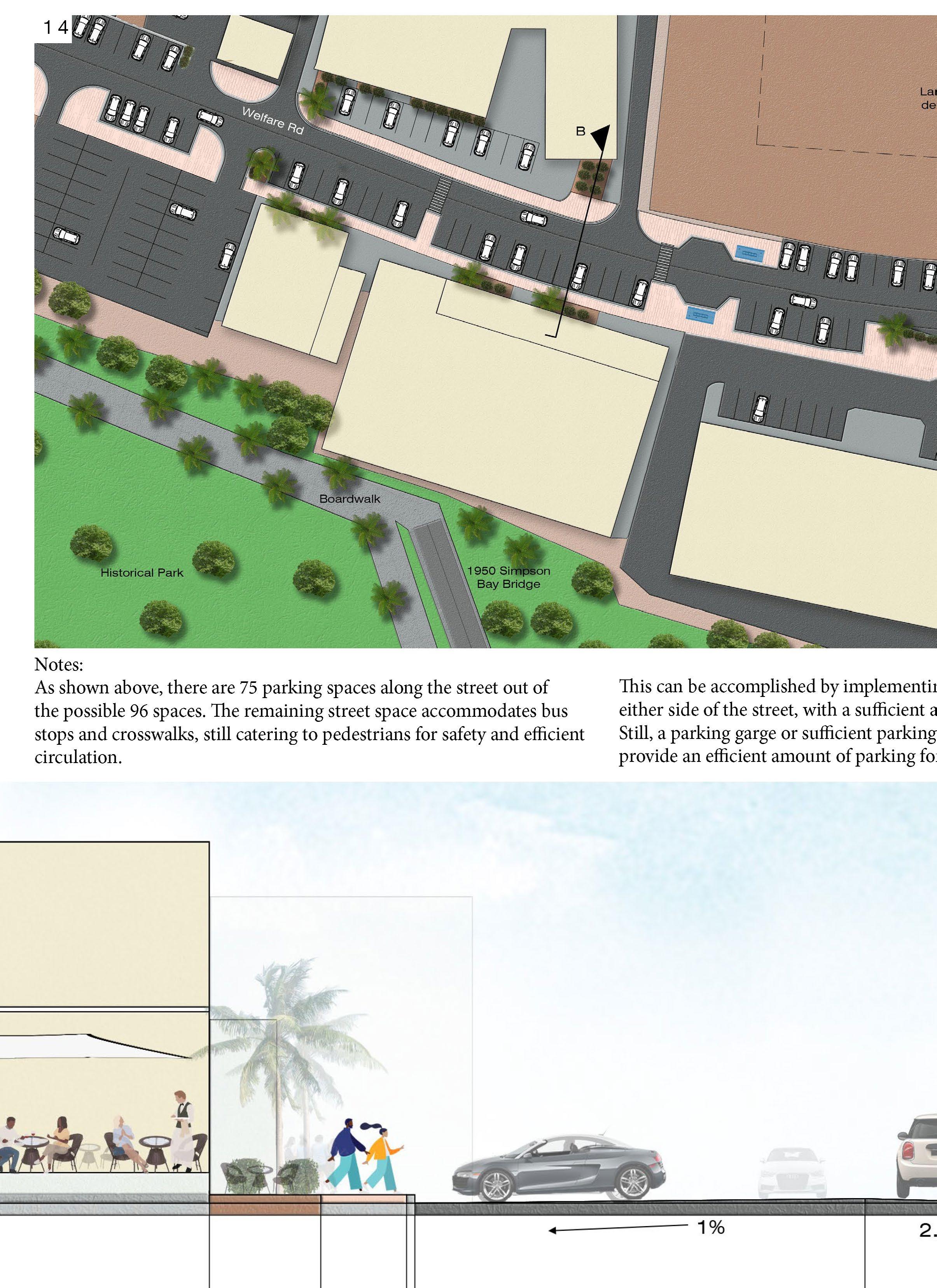 The purpose of this study is to analyze and understand the current conditions of traffic circulation and pedestrian safety on the island of Sint Maarten, specifically the strip of nightlife in Cole Bay, and create efficient design solutions. Roads on the island of Sint Maarten are unstructured, damaged, and dangerous, which lead to improper parking. High traffic intensity and the fair share of reckless and inexperienced drivers results in a high rate of accidents.