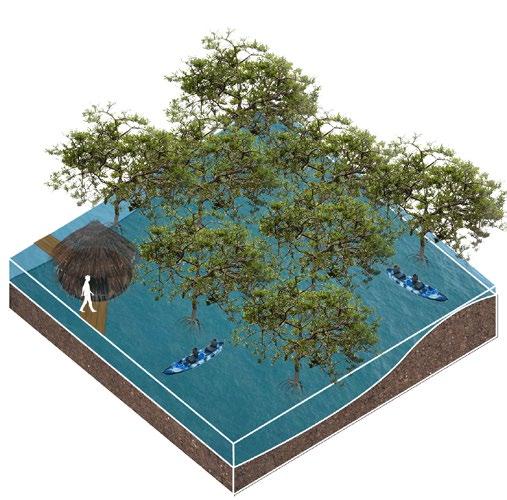 The community will not only heal the cienaga but collaborate with the ecology by producing mangrove, continue to steward the ecosystem through youth education, and payment for ecosystem services. Eco-tourism thrives with tourist sleeping pods and sustainable boat tours which create a new form of regenerative economy for the community. The Cienaga de la Virgen is not at the peripheries. We believe that it is a place to experienced and not a place to be neglected.