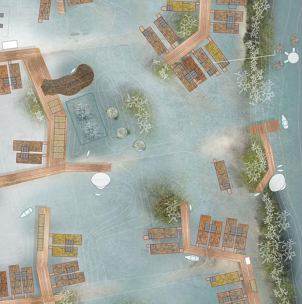 project envisions establishing an amphibious housing armature, seeding ecological stewardship, reviving water mobility, and enhancing economic opportunities for locals. Inspired by the music and culture of Cartagena, our project enhances places of gathering and coming together in order to form pluralistic, restorative spaces of healing that are nested within a larger transformation of the Ciénaga, involving ecosystem services, incentivizing collective land tenure, and taking a supportive stance towards healing from injustices of extractive histories.