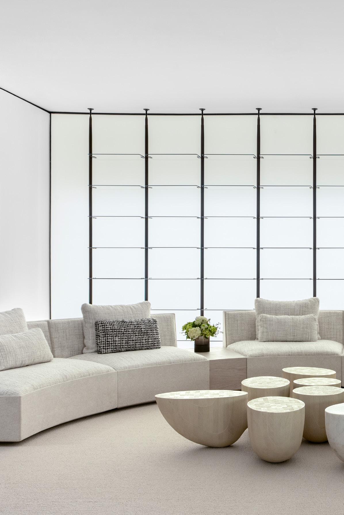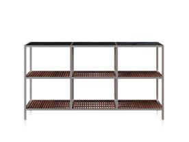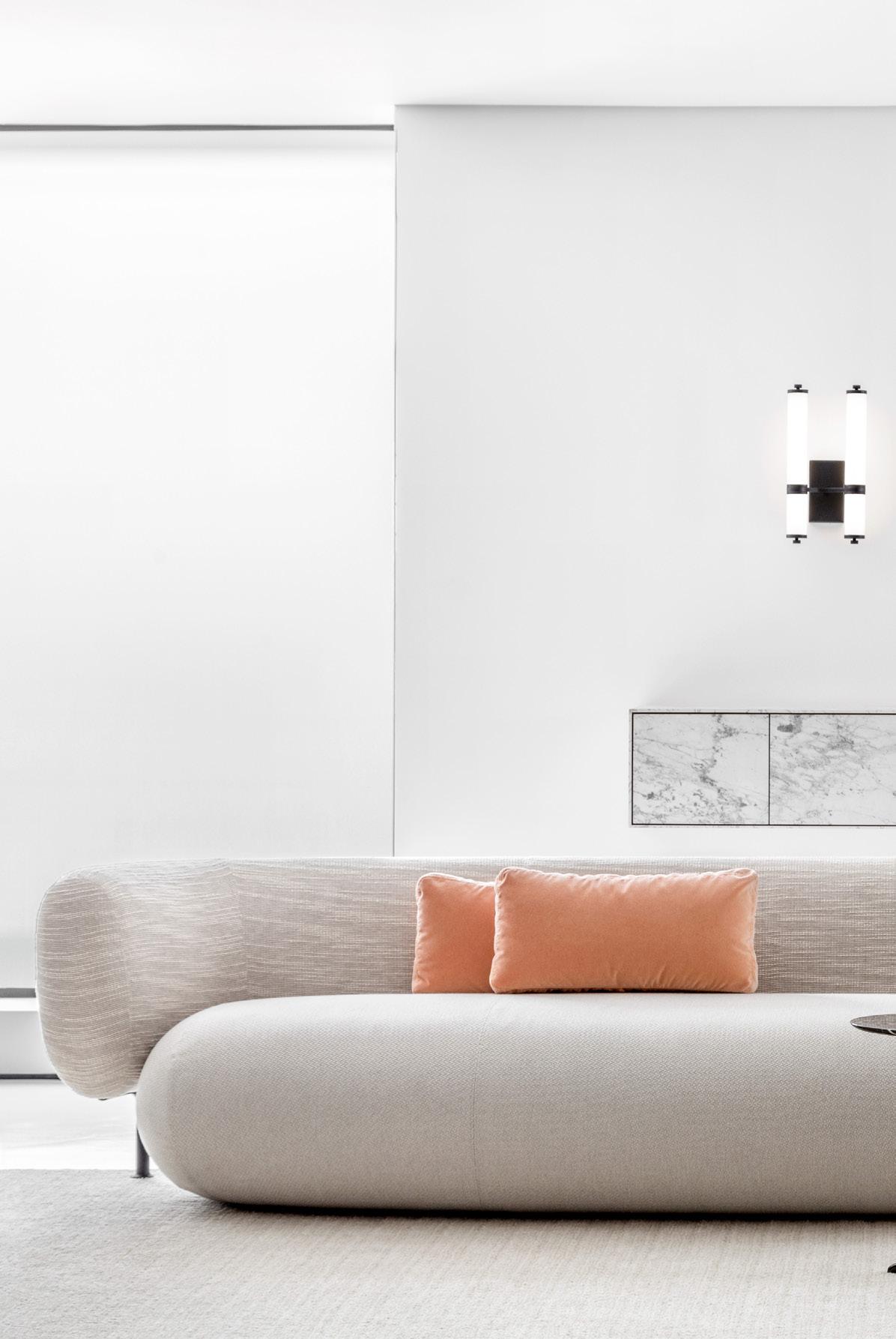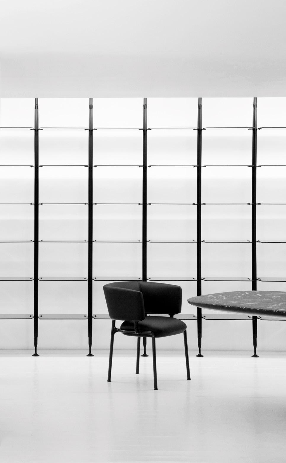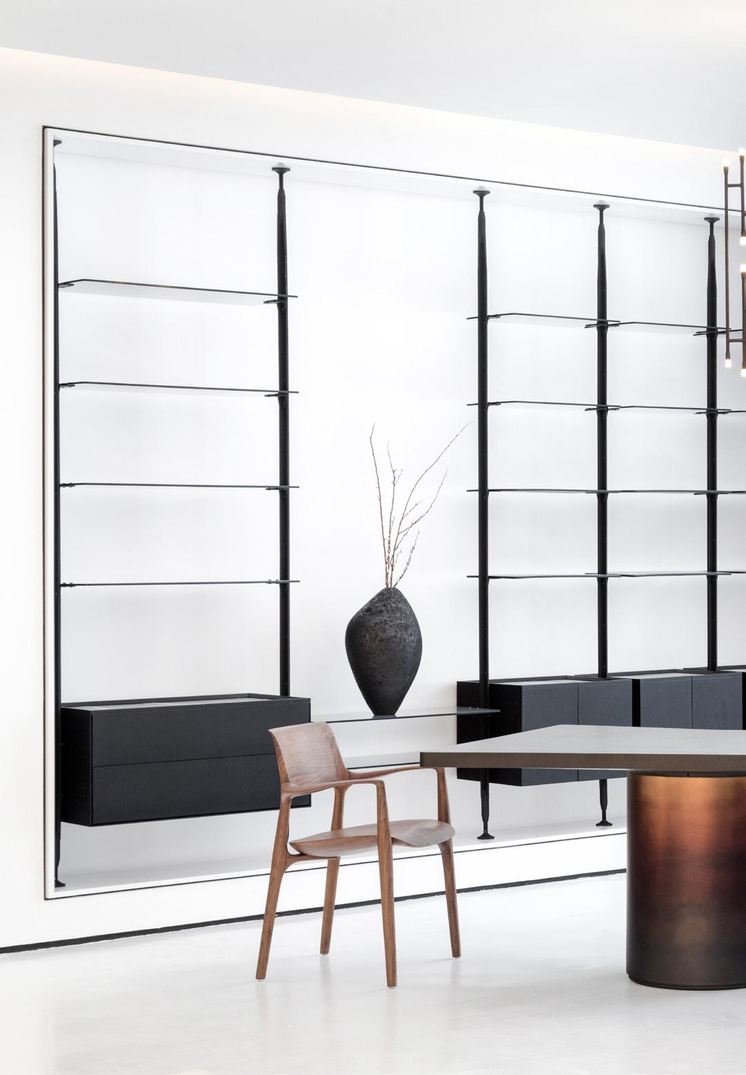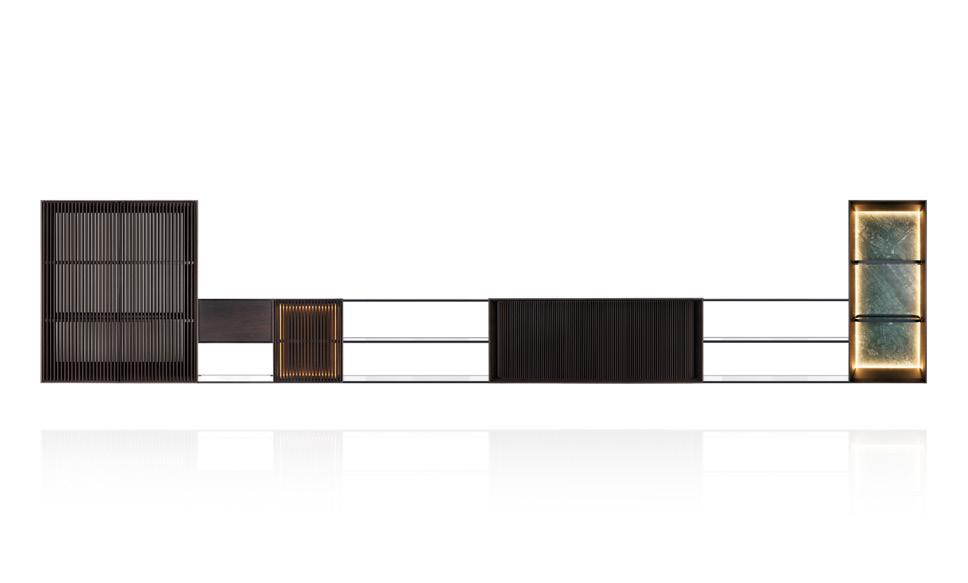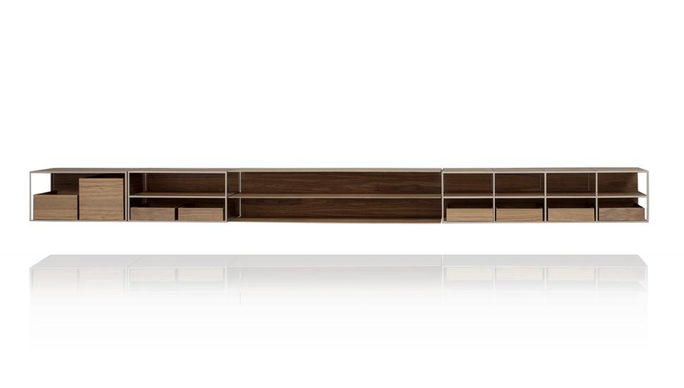 Como característica predominante na linha as extremidades são fechadas, e sustentam a superfície do tampo em um vão que pode chegar a 5 metros. No sistema há portas, prateleiras e nichos, e o sofá acomoda generosas e confortáveis almofadas.
