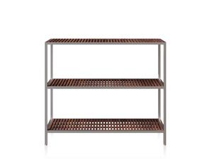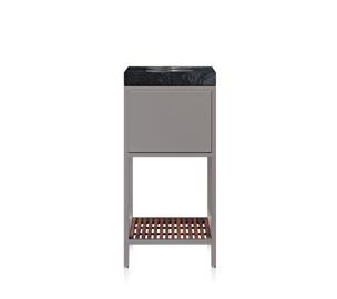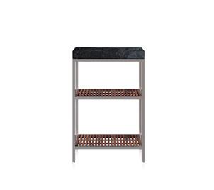 Tampo superior: mármore ou madeira ripada de teca natural ou tingida.