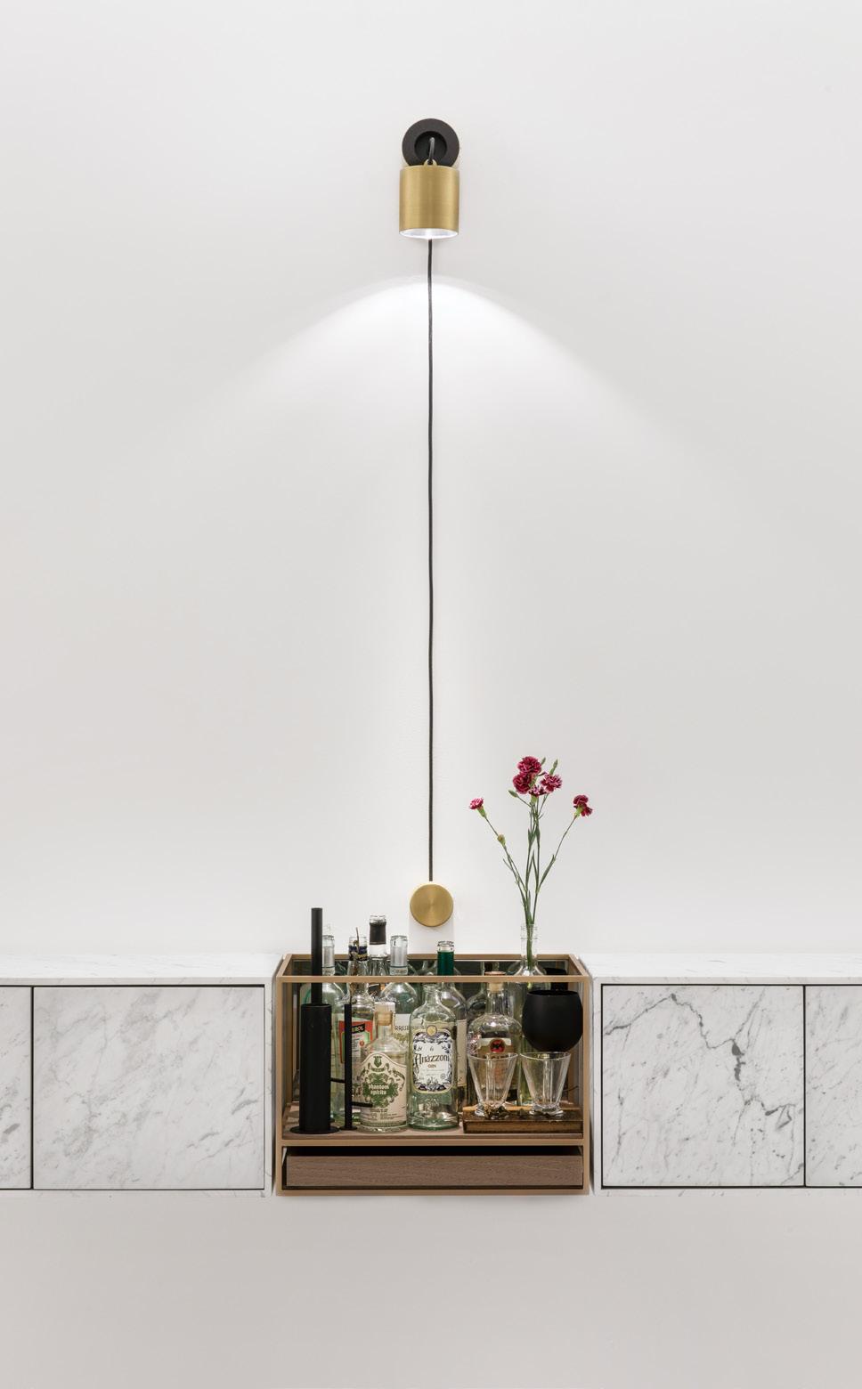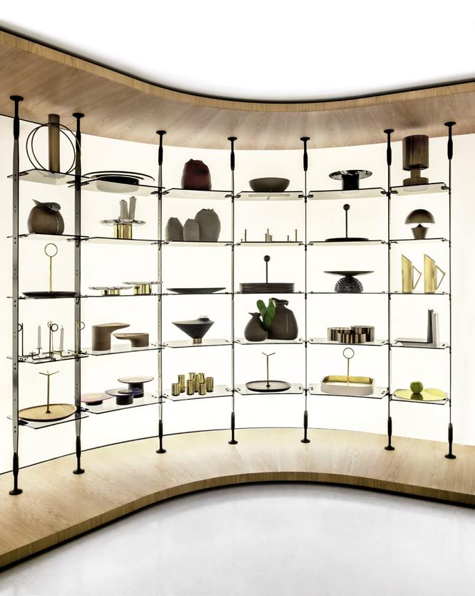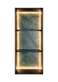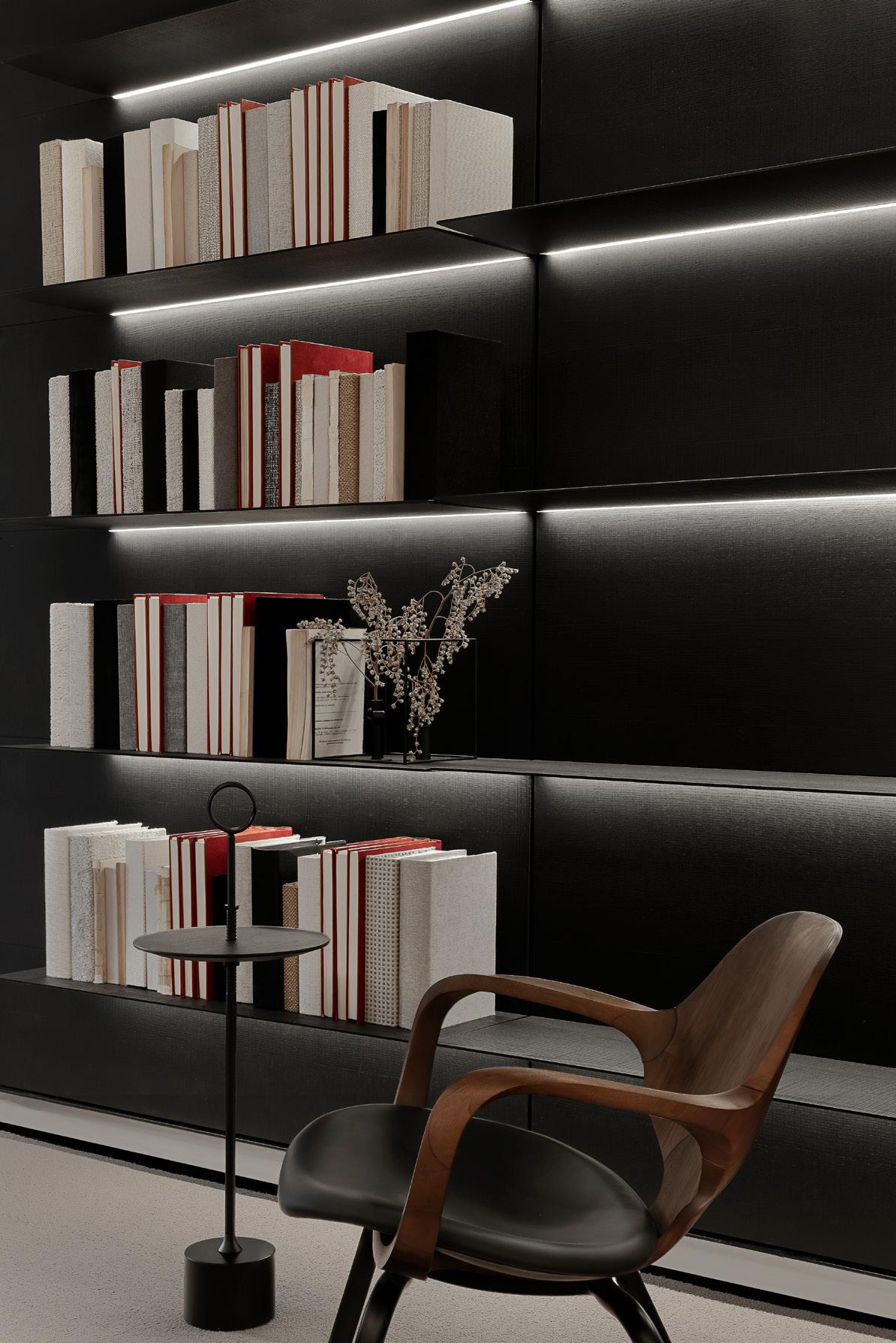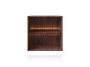 Prateleira: laminado natural ou tingido ou revestido em couro. Iluminação de LED opcional.