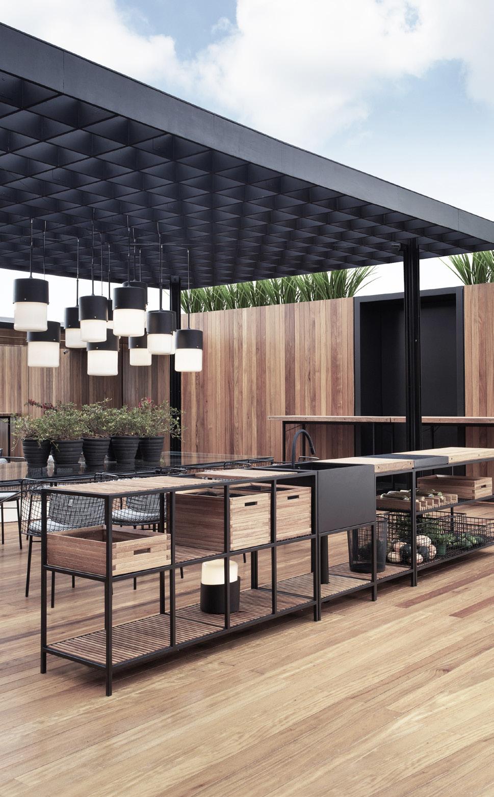 Um conjunto de módulos de serviço, apoio e armazenagem que quando combinados resultam em inúmeras soluções para diferentes necessidades. De uma simples bancada a um espaço gourmet. Uma resposta inteligente, prática e pronta para a realidade das residências atuais.