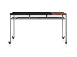 Shelf: natural or stained laminate, or leather-upholstered.