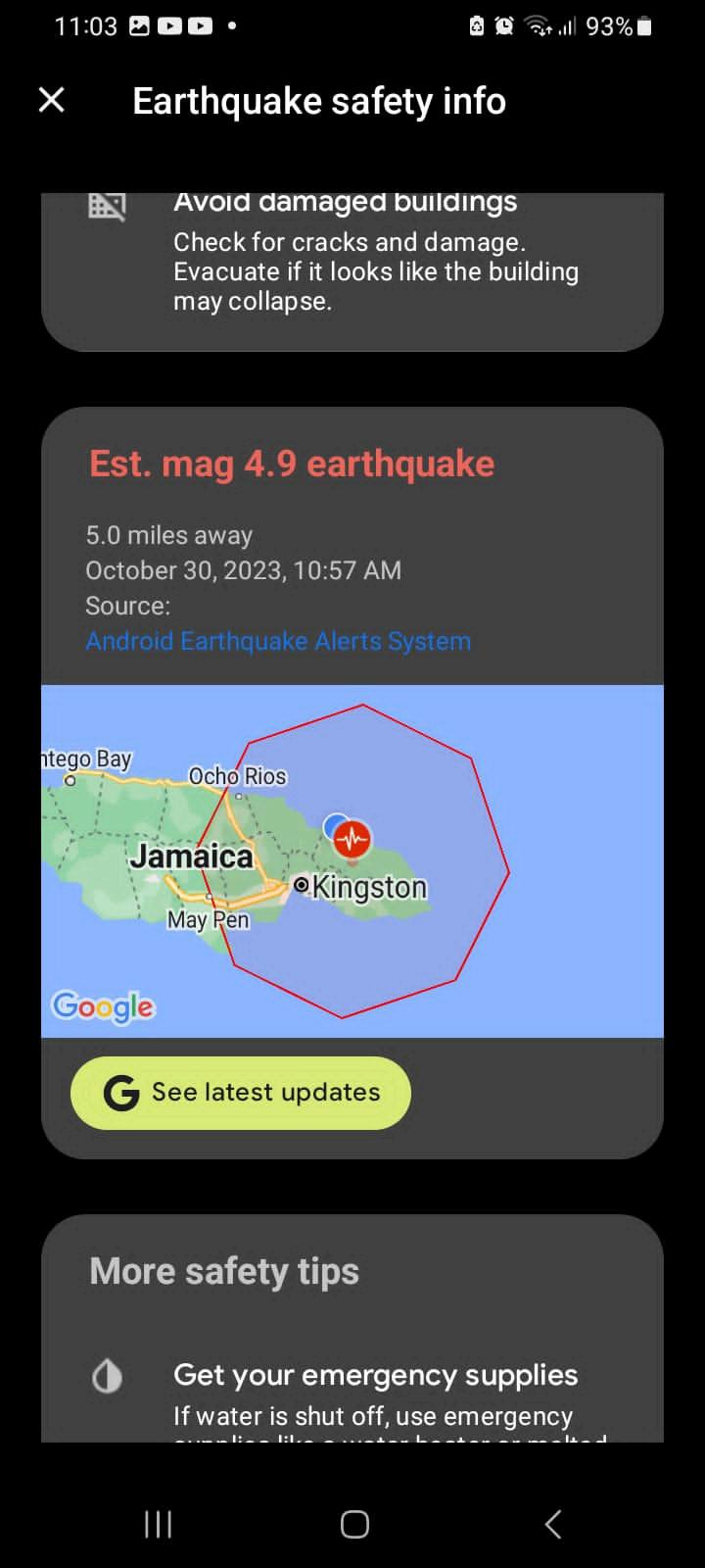 Stay away from hazards: Stay away from damaged buildings, landslide-prone areas, and broken power lines.