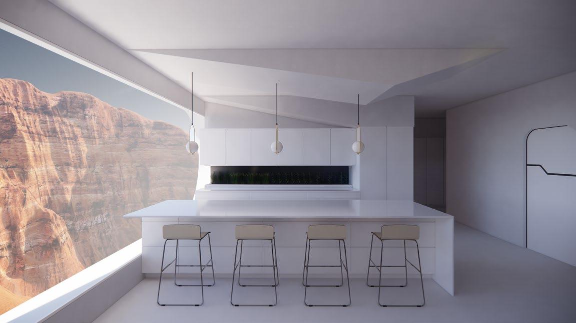 When looking at this design, we decided to stray from the precedent set of harsh, white and over-engineered space habitations. We were designing for LIFE. Therefore, the human experience came above all else. If we were expecting long-term stays, mental health played a huge part in our design. Mars is an extremely volatile environment, with extreme radiation and 6 month long planet entombing dust storms. We incorporated circadian rhythm lighting to encourage healthy sleep habits, plants for residents to take care of in every living space, and a large central community center for natural human interaction. We also found value in giving the residents an opportunity to do things outside of their survival-based jobs. We provided spaces for creativity to bloom in each living module, allowing for the people to do whatever they would like. A sense of purpose, separate from their survival.