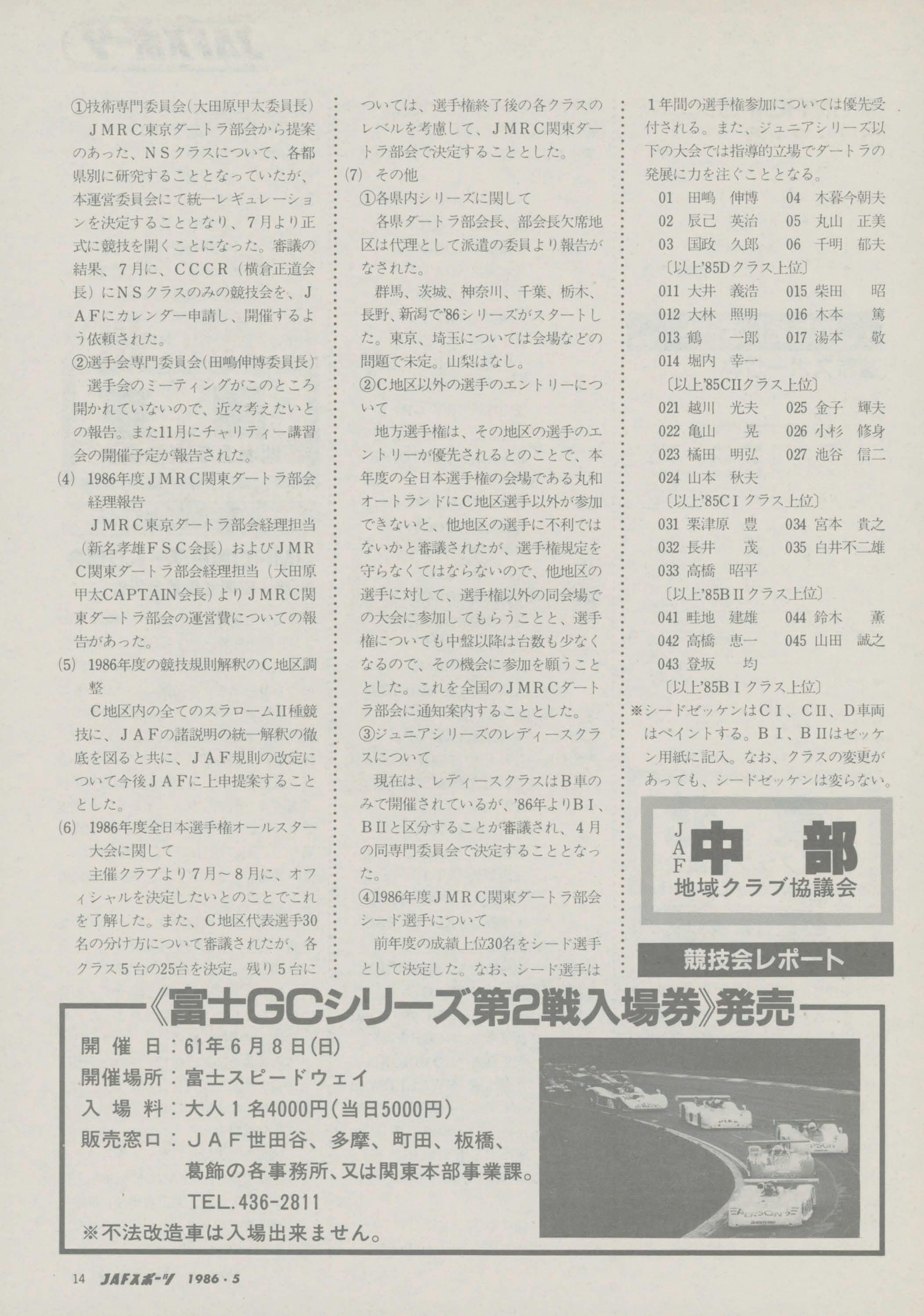 Mo¥'eFirstRally'86 '86TourDe '86 2 31~ 31~ '86 3 l 7~ 7~8 '86
