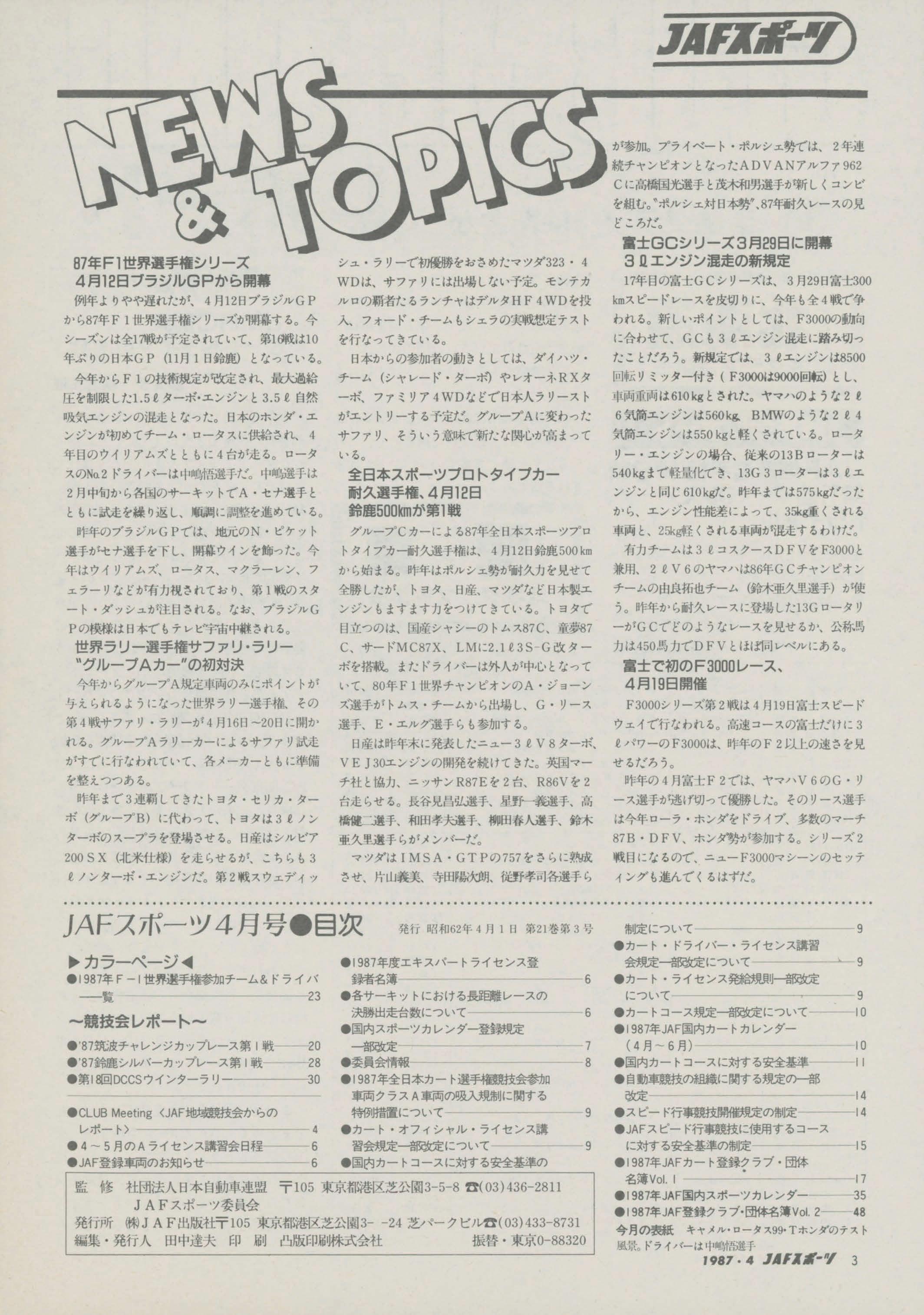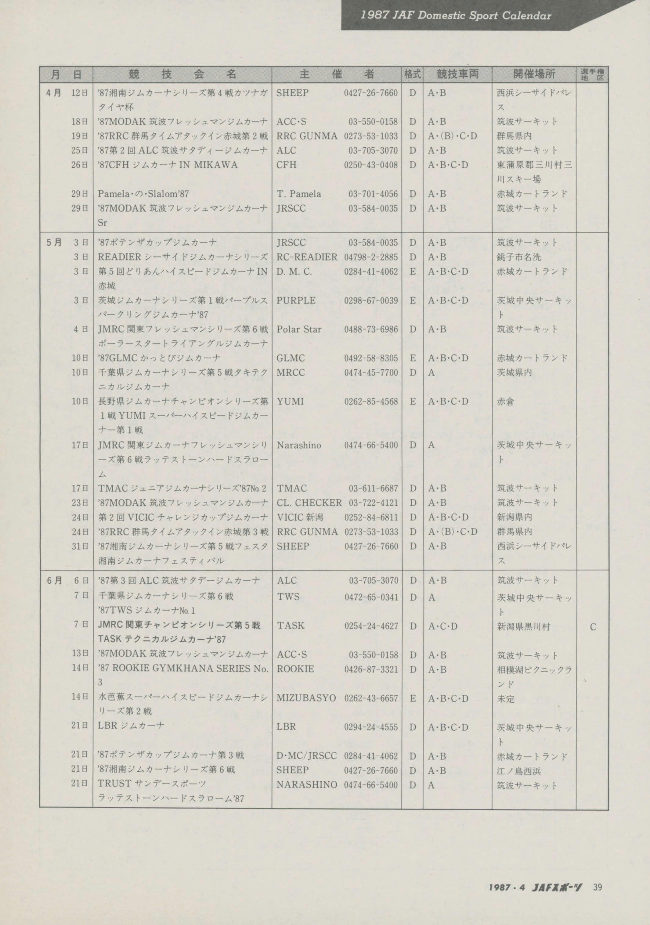 4 KANSAI-RALLY87 4~ 03-763-8010 B • B • CL 03-589-3791 D Nl,NE