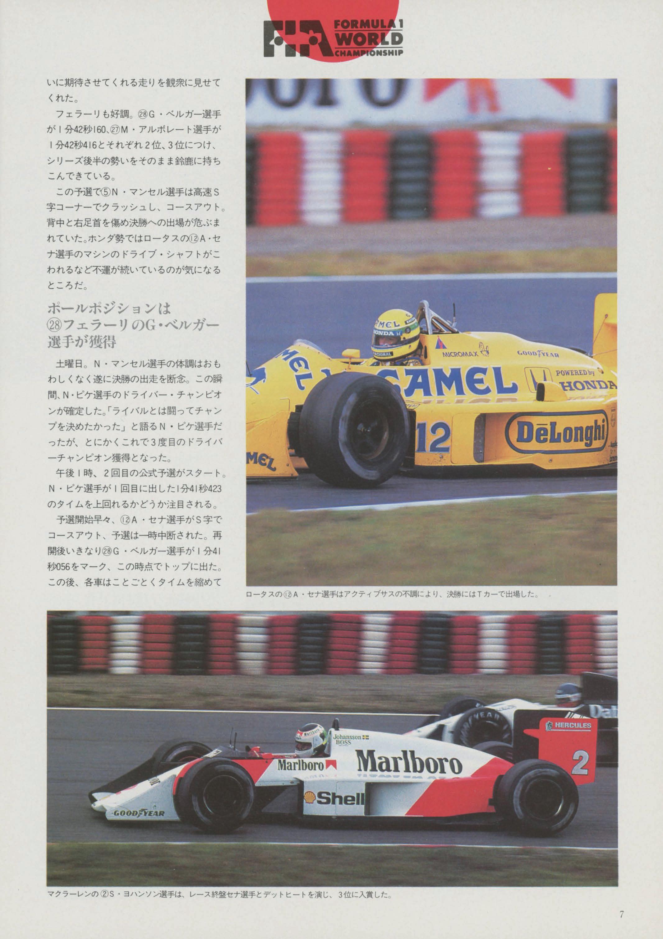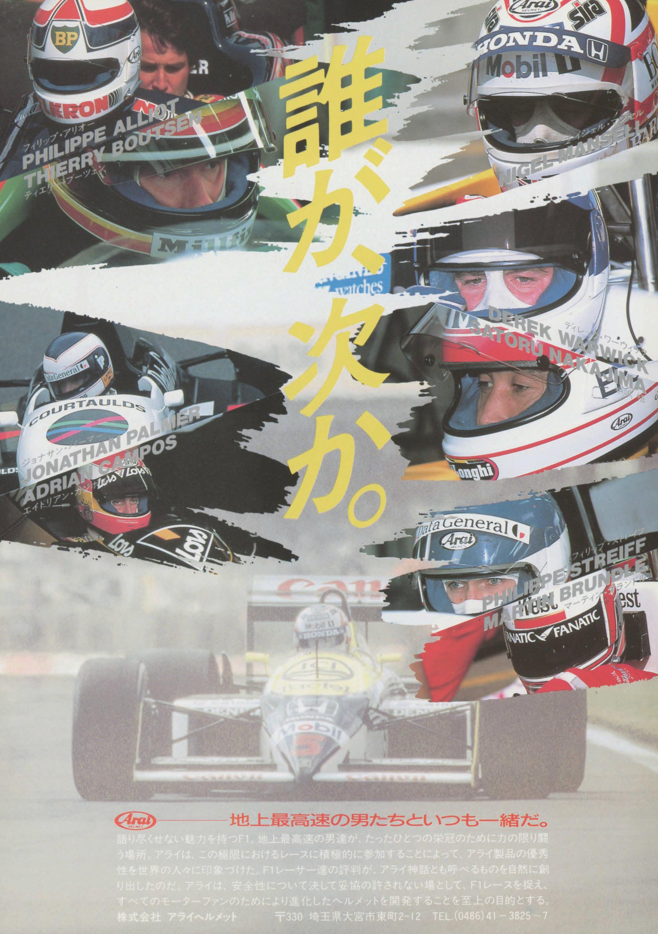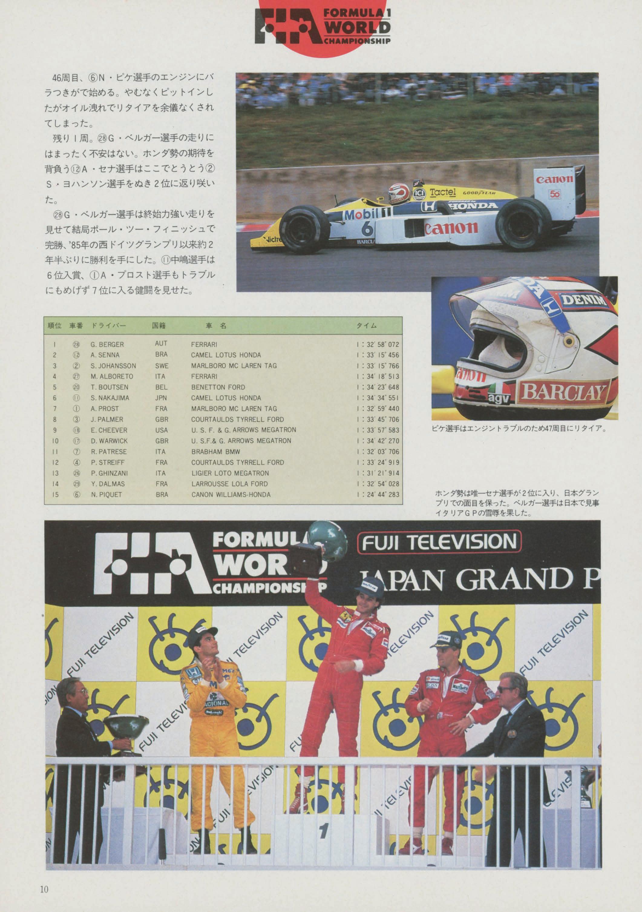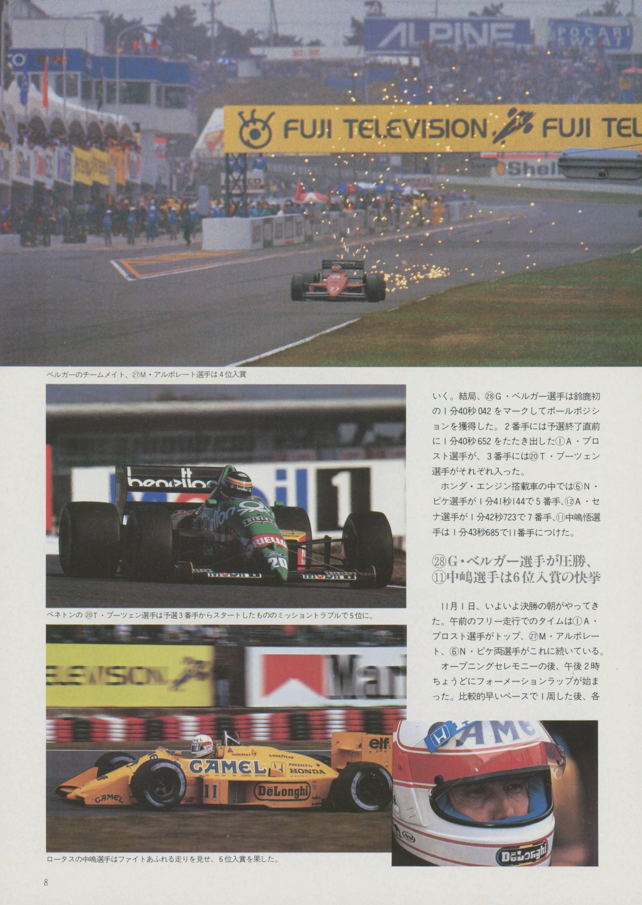 P.STREIFF P.GHINZANI Y.DALMAS N,PIQUET AUT BRA SWE ITA BEL JPN FRA GBR USA GBR ITA FRA ITA FRA BRA