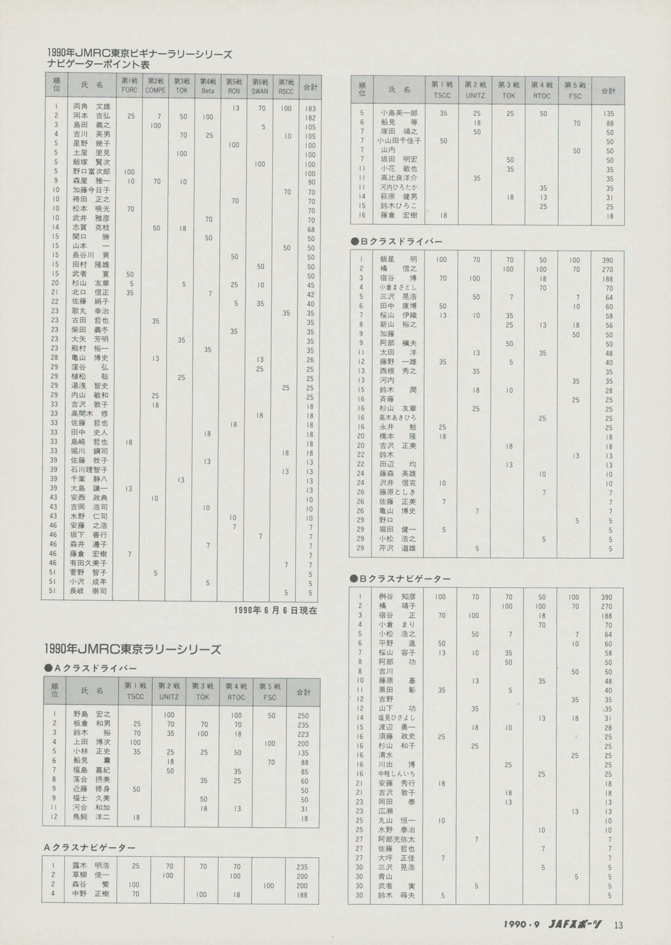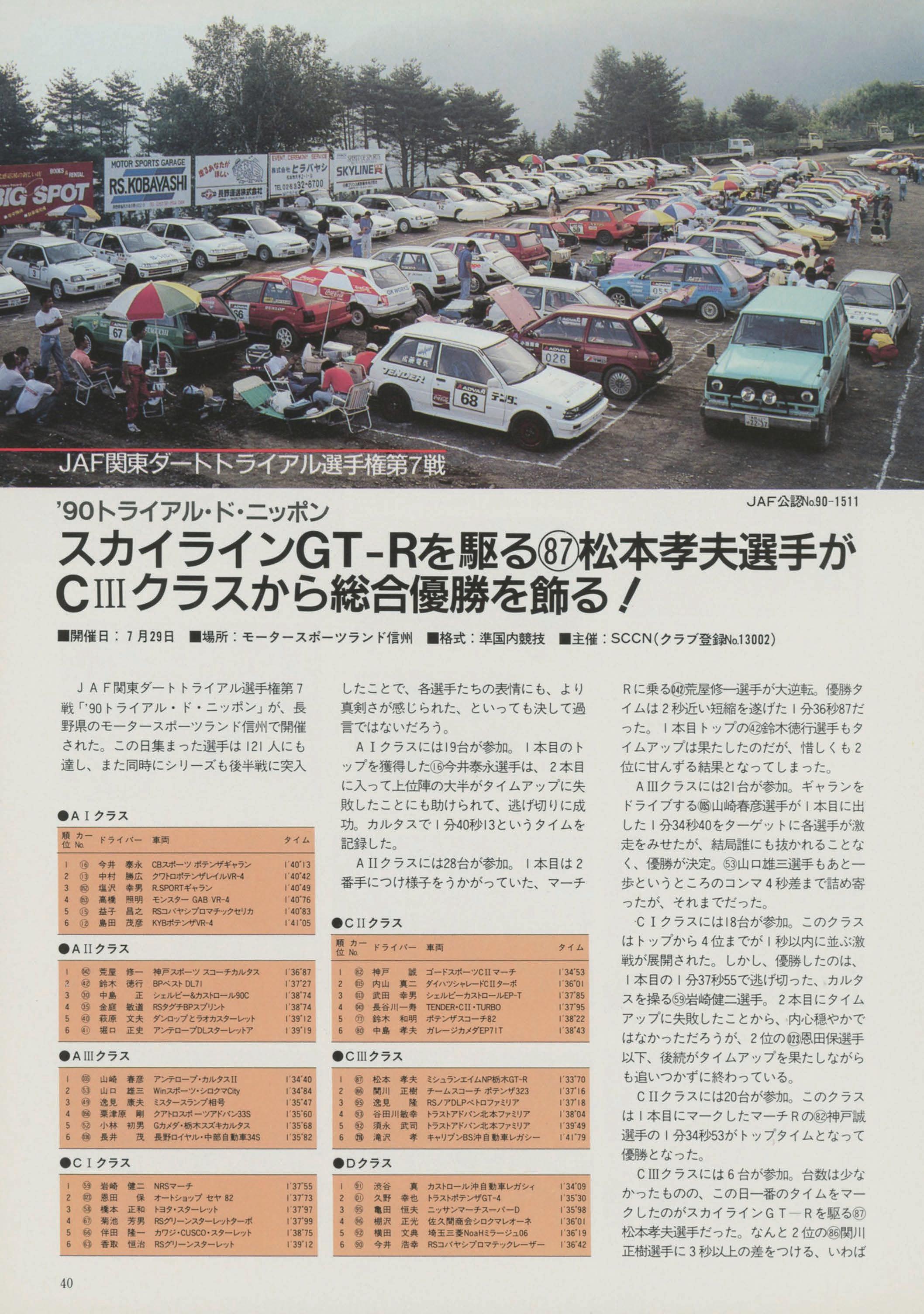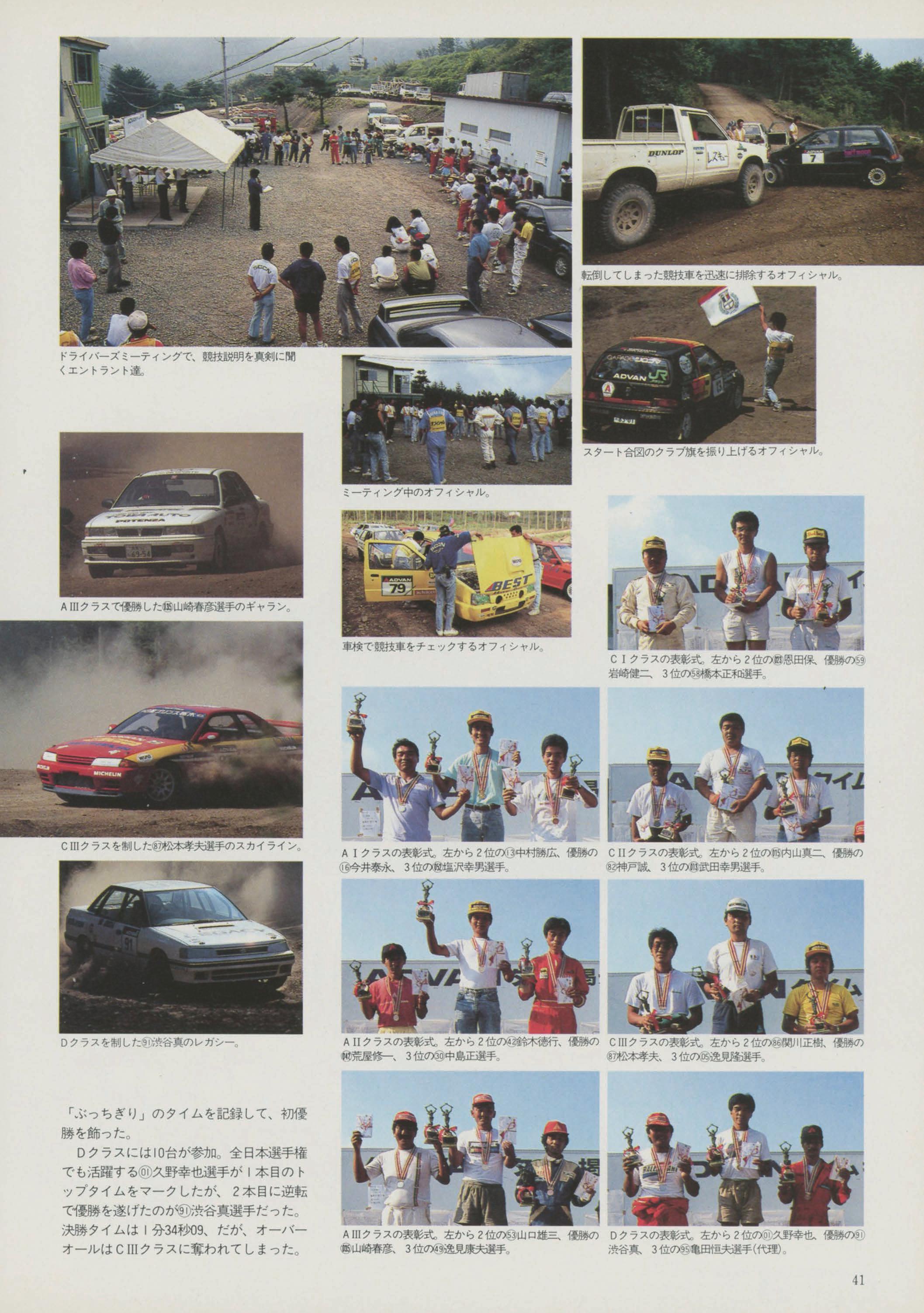 各競技会の各部門、各クラスごとの競技結果成絨に)&づき、
