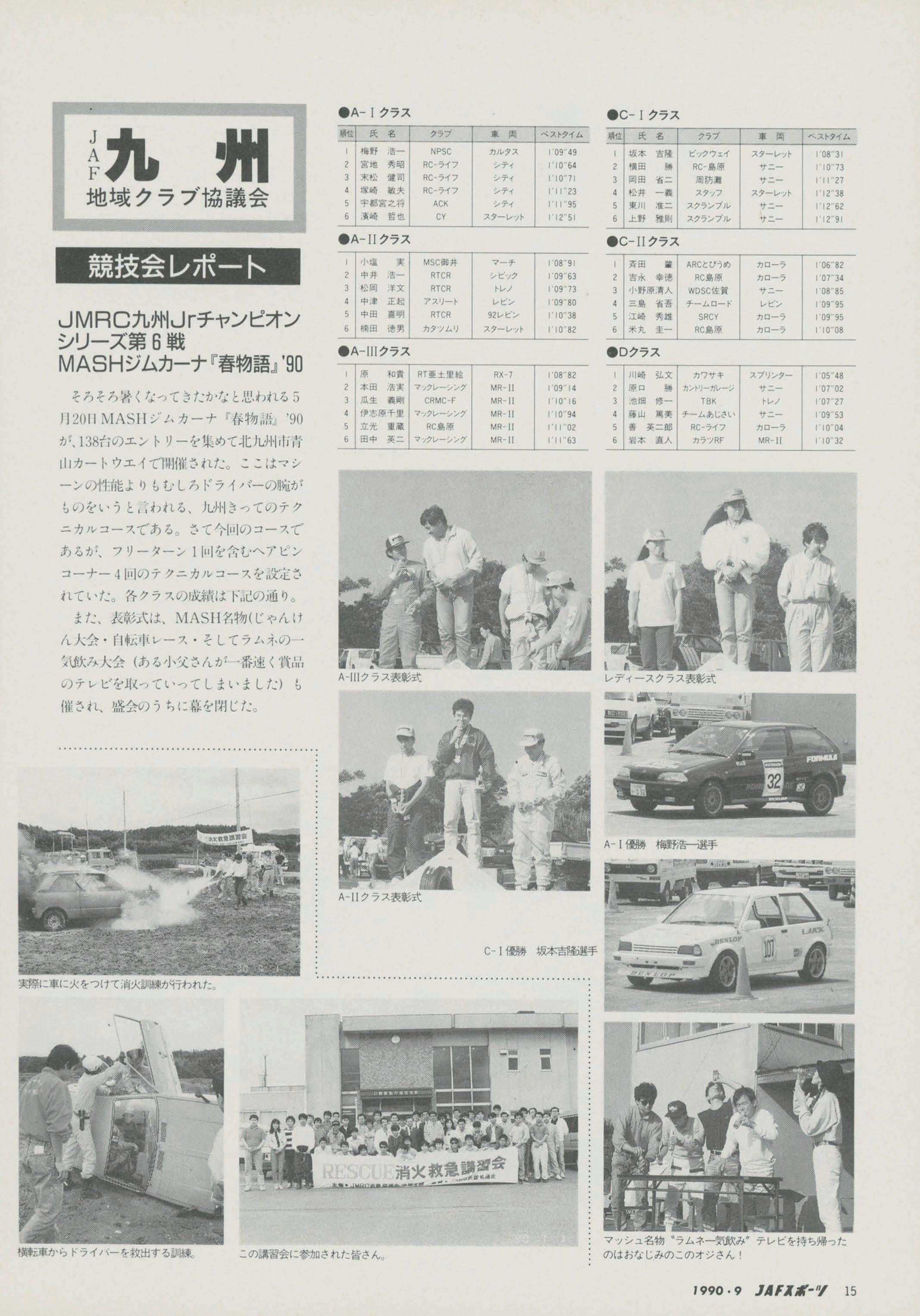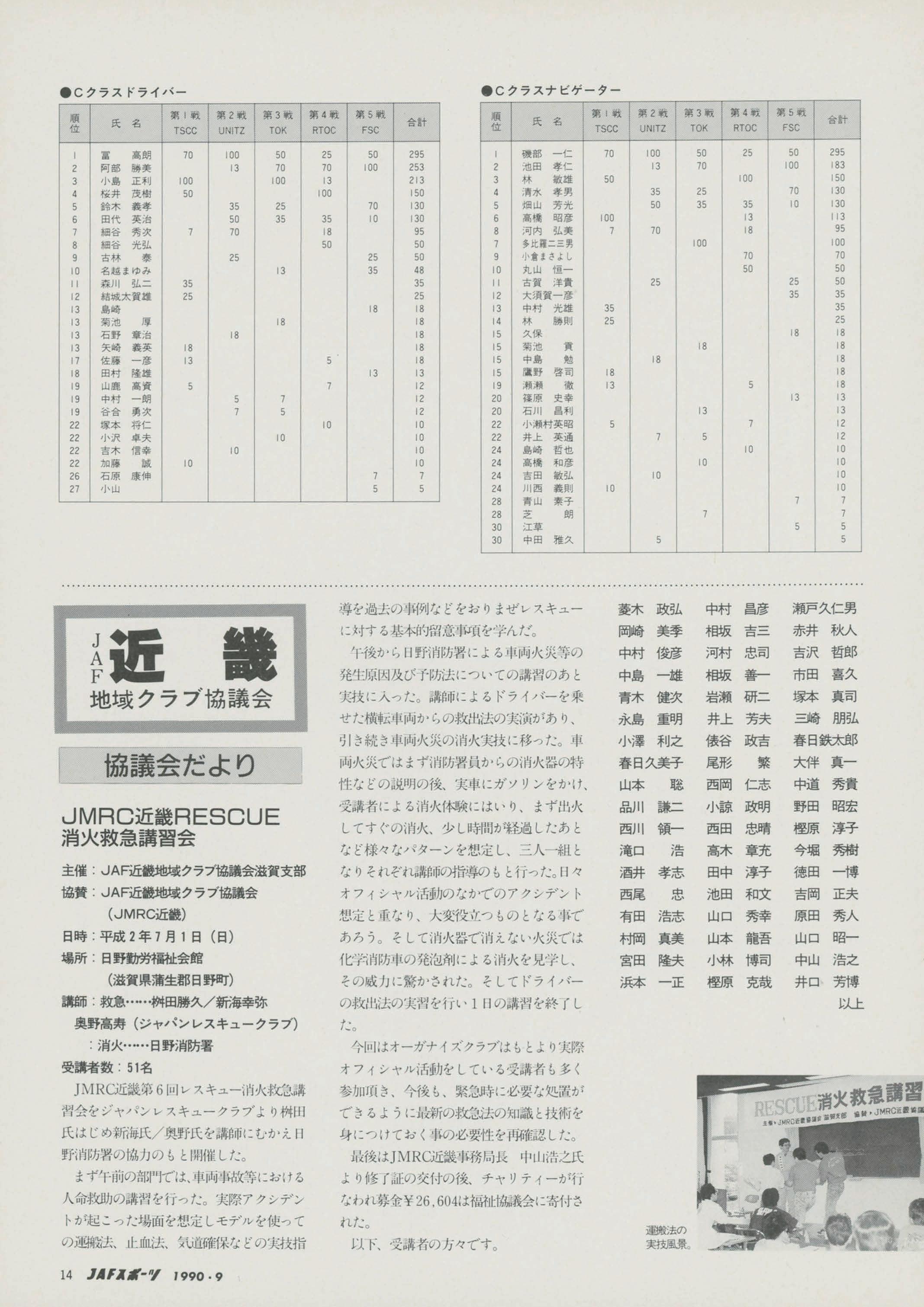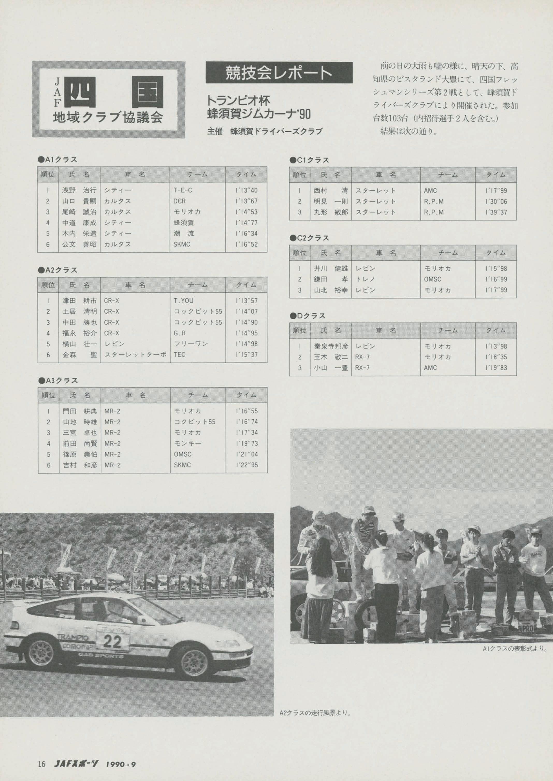 各競技会の各部門、各クラスごとの競技結果成絨に)&づき、