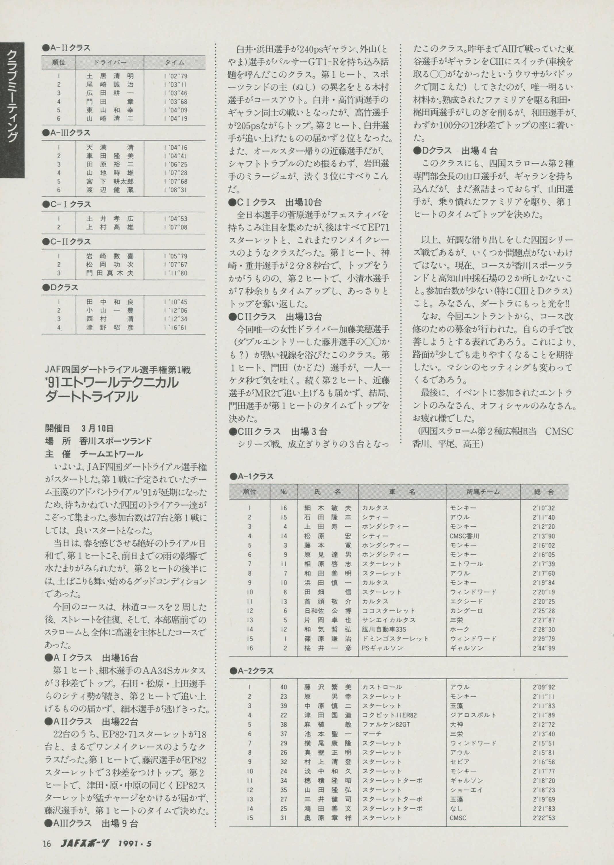 JAFスポーツ 1991年 5月号(第25巻 第4号 1991年4月1日発行)