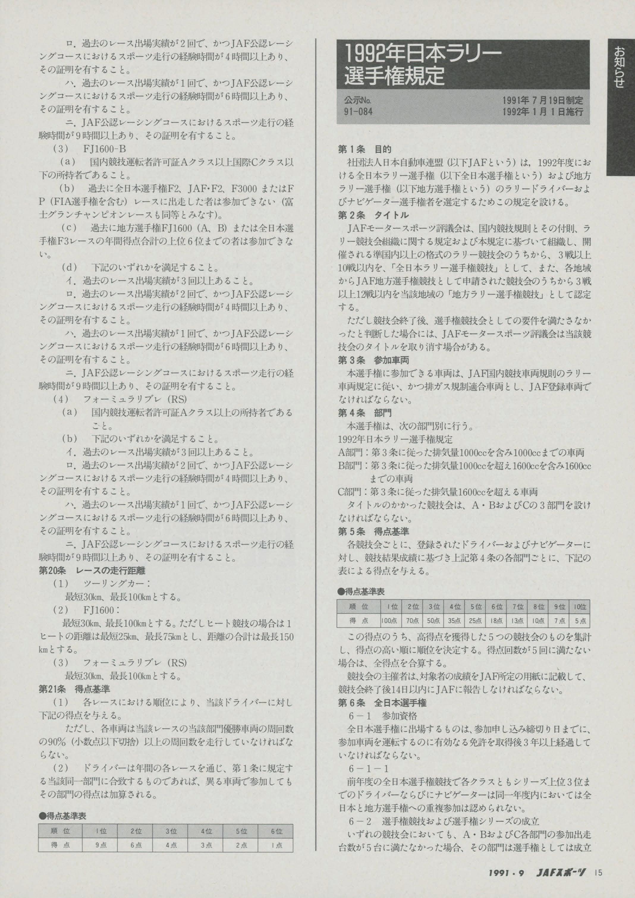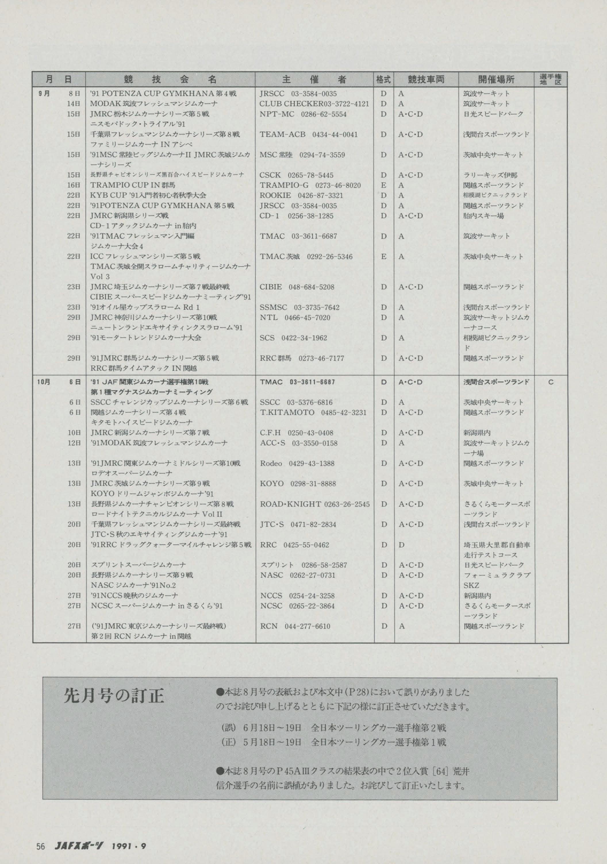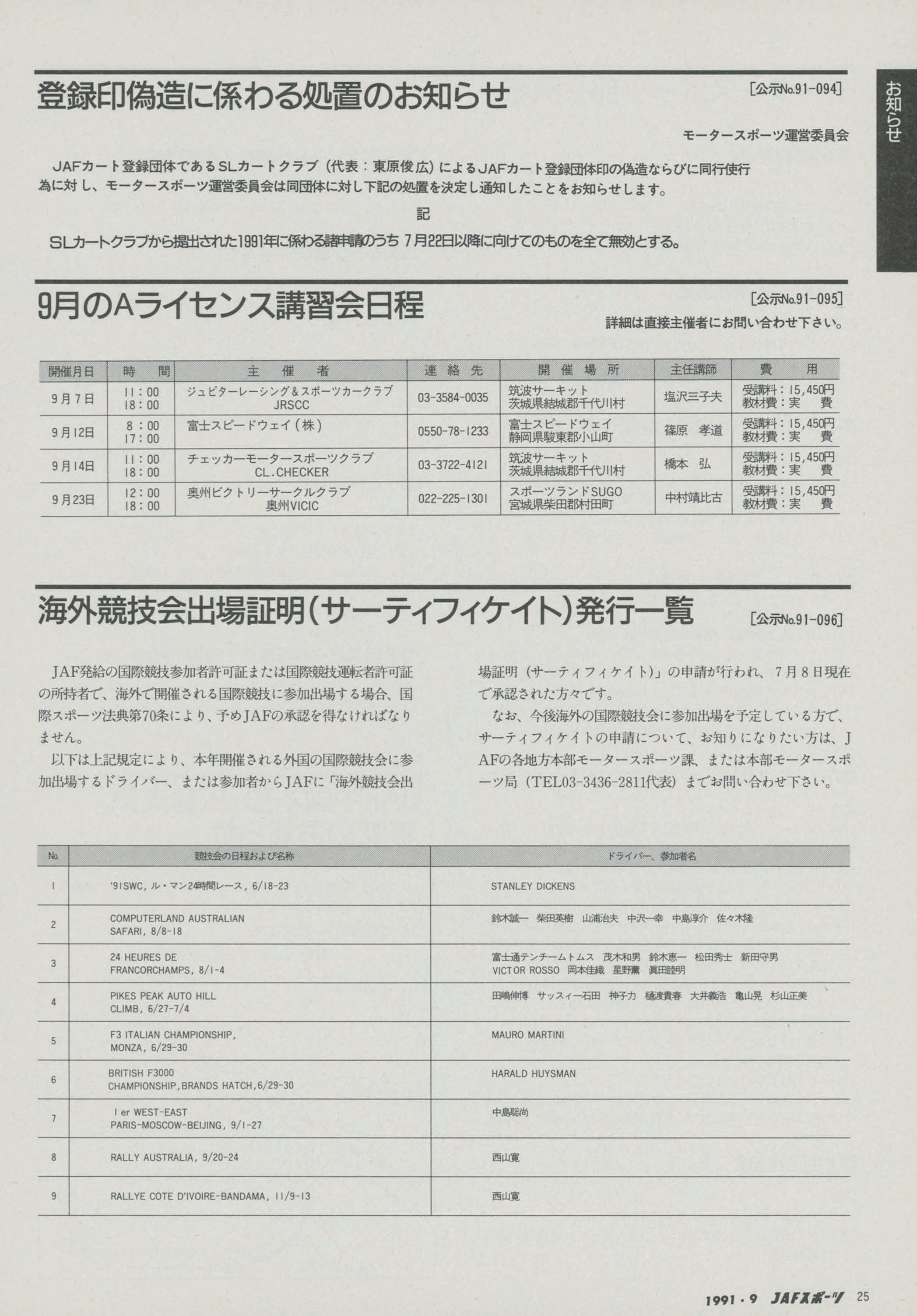 JAFスポーツ 1991年 9月号(第25巻 第8号 1991年8月1日発行)