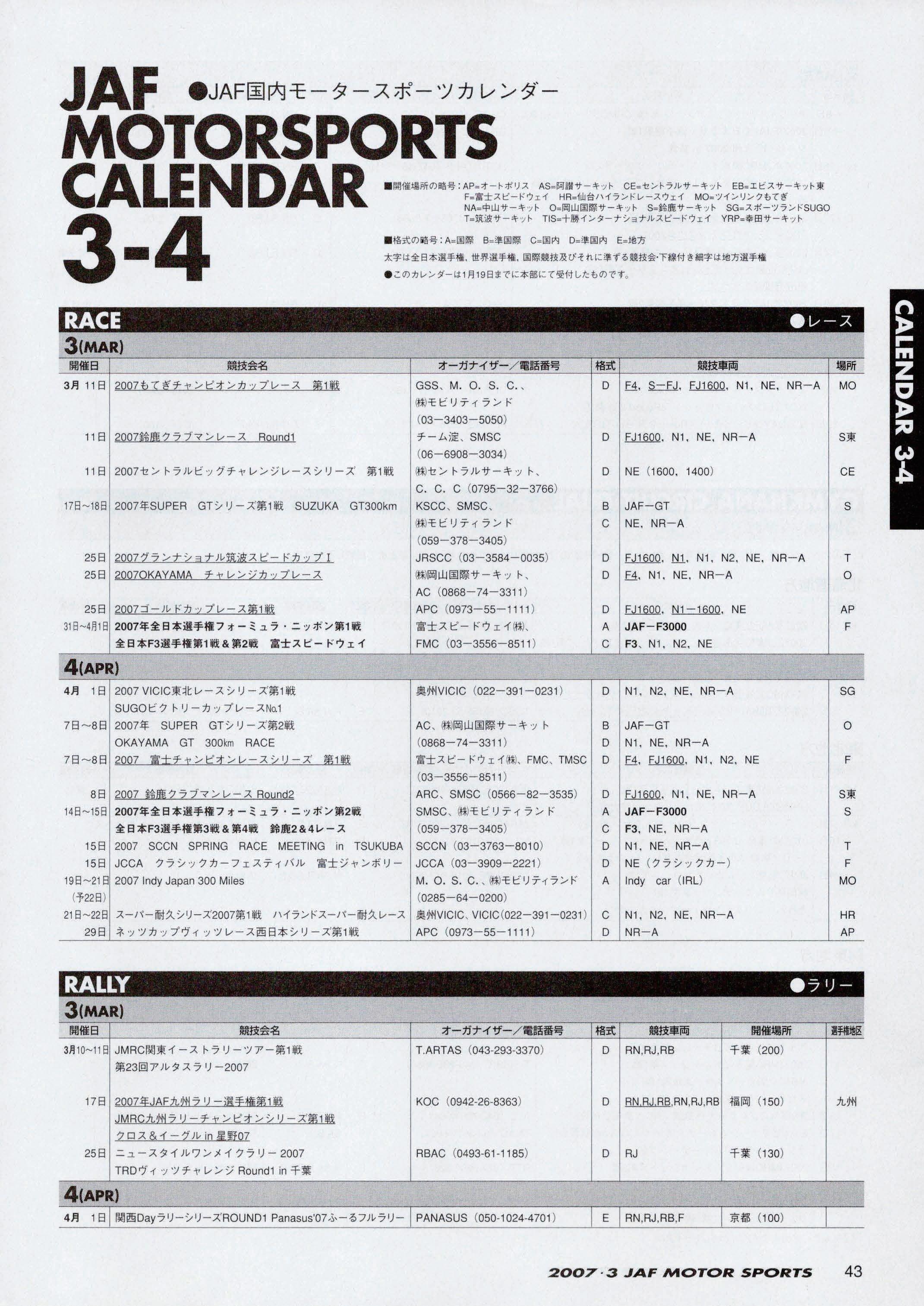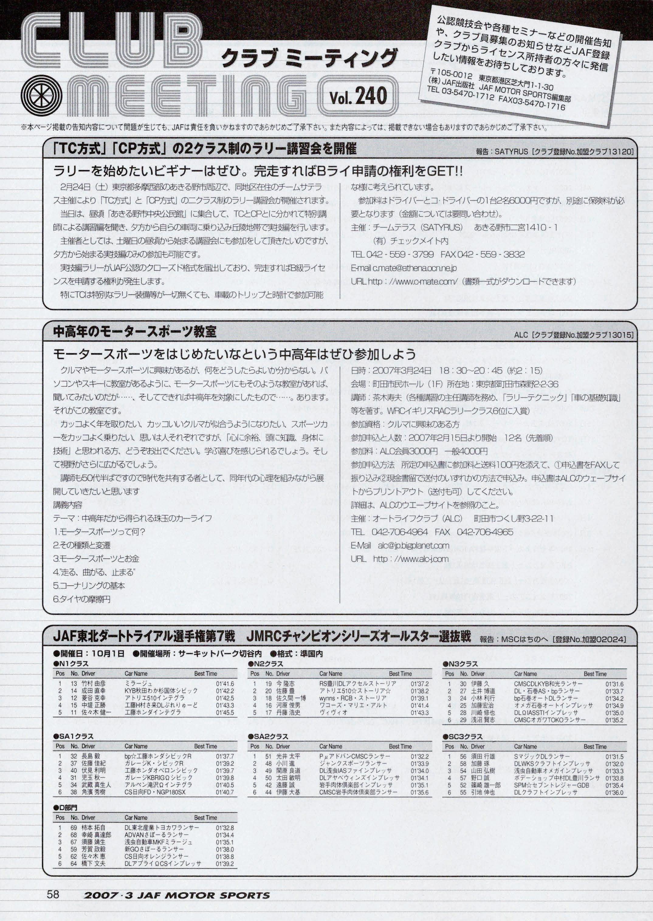JAFスポーツ 2007年 3月号(第41巻 第2号 2007年3月1日発行)