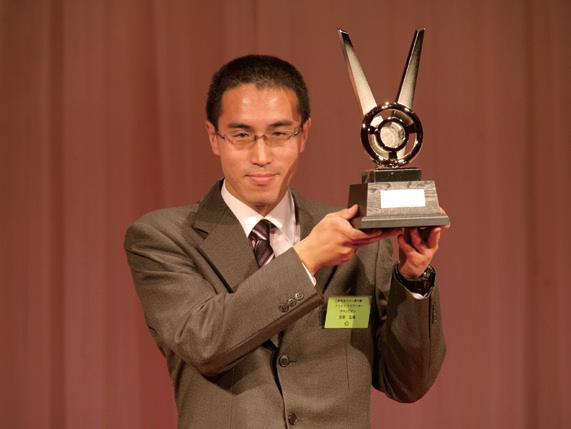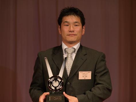 2009JAFモータースポーツ表彰式 晴れやかな笑顔でしっかりとチャンピオンの感触をたしかめる─。