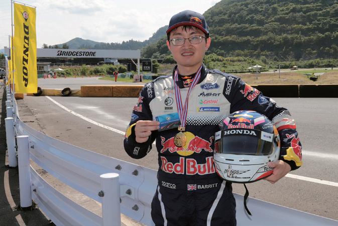 川脇氏は大会の最後に参加者の車両を運転する デモ走行を披露。コースの設定や整備に場内アナ ウンスにレクチャーにと、大忙しの一日となった。