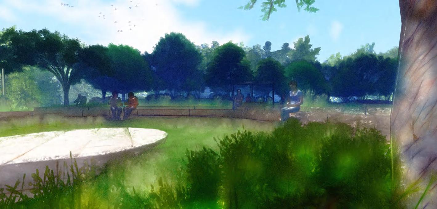 The City of Arlington's relationship with Johnson Creek is complex. Climate change and mass development has increased the frequency and severity of flash flooding, degrading the quality of the creek and endangering individuals within its 100-year floodplain. At the same time, Arlington's vast hardscapes have inhibited recharge of the underlying Woodbine Aquifer, which has historically provided municipal and agricultural water for the city. In response, the City of Arlington has begun purchasing and converting at-risk lots into green spaces in an effort to reduce flood risk. Confluence Park is one such space; it reimagines Johnson Creek as a key site for flood buffering, aquifer recharge, water purification, ecological restoration and community interaction.