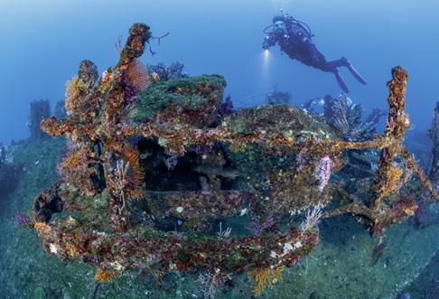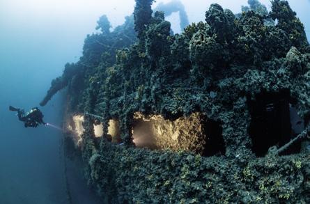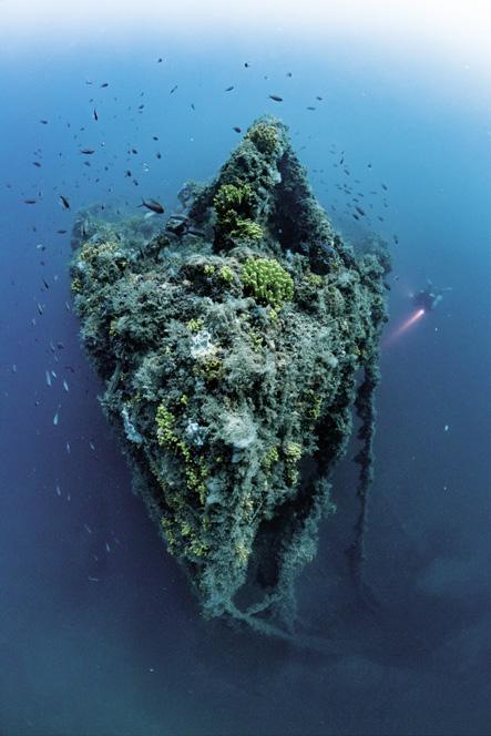 ter shows 90 minutes ‘Time to Surface’. An open-water ascent in the current would be life-threatening. A 30-metre spool line is attached to the wreck, and the ascent is carried out in a controlled manner. In shallower water, a miracle occurs: the visibility clears, and the chain appears in the distance. The decompression ends safely. Our own little ‘Battle of Gallipoli’ has been won.