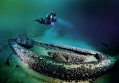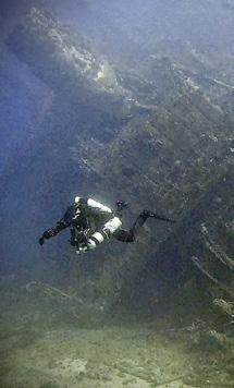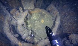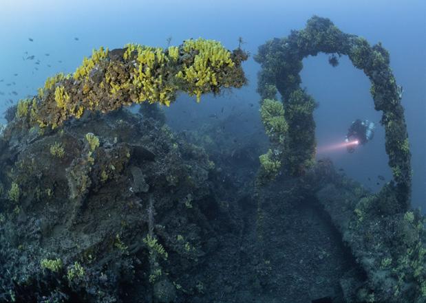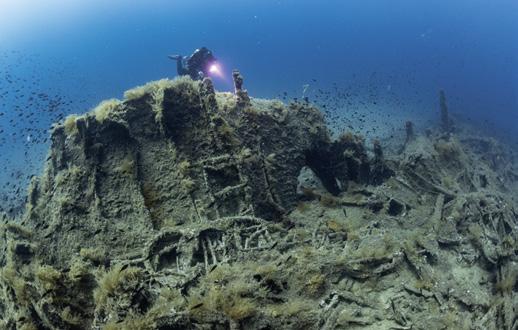 The following day, the descent takes us to the Carthage, a 121-metre-long French Navy supply ship. In 1915, it was torpedoed and sunk by the German submarine U-21 near Cape Helles.