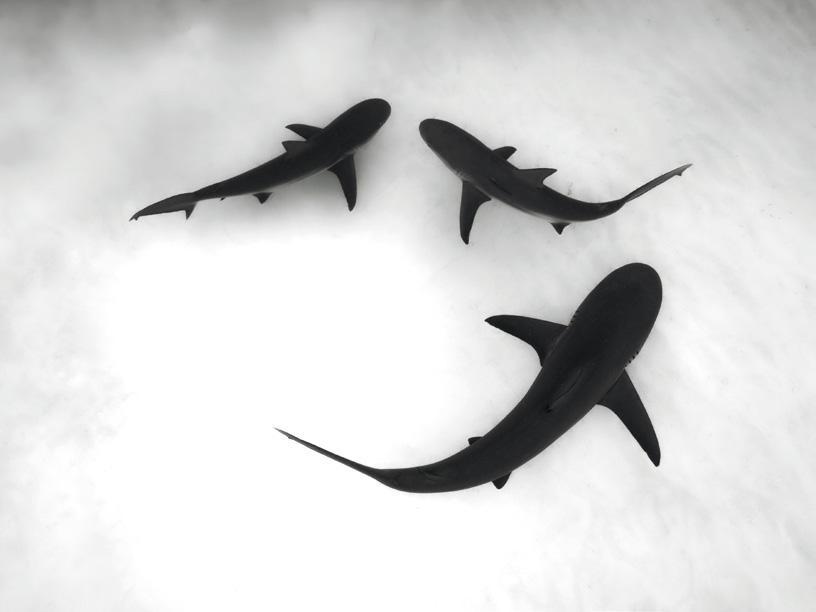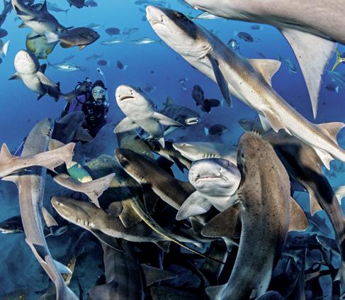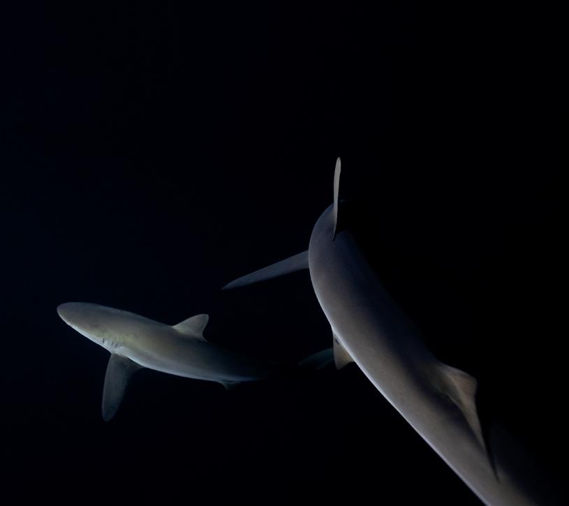 Whenit comes to capturing a striking portrait of a shark, the classic approach is to place the shark at the centre as the clear focal point, with strong eye contact and a composition that directs all elements towards it. This method produces highly effective images and works well with many species of shark, but it often yields similar results: comparable poses, similar compositions and a uniform visual impression. There is often a desire for images with a stronger behavioural focus, showing sharks in their natural environment without them reacting to the camera or the viewer. Such photographs, in which the shark is not necessarily the dominant subject, are less ico-