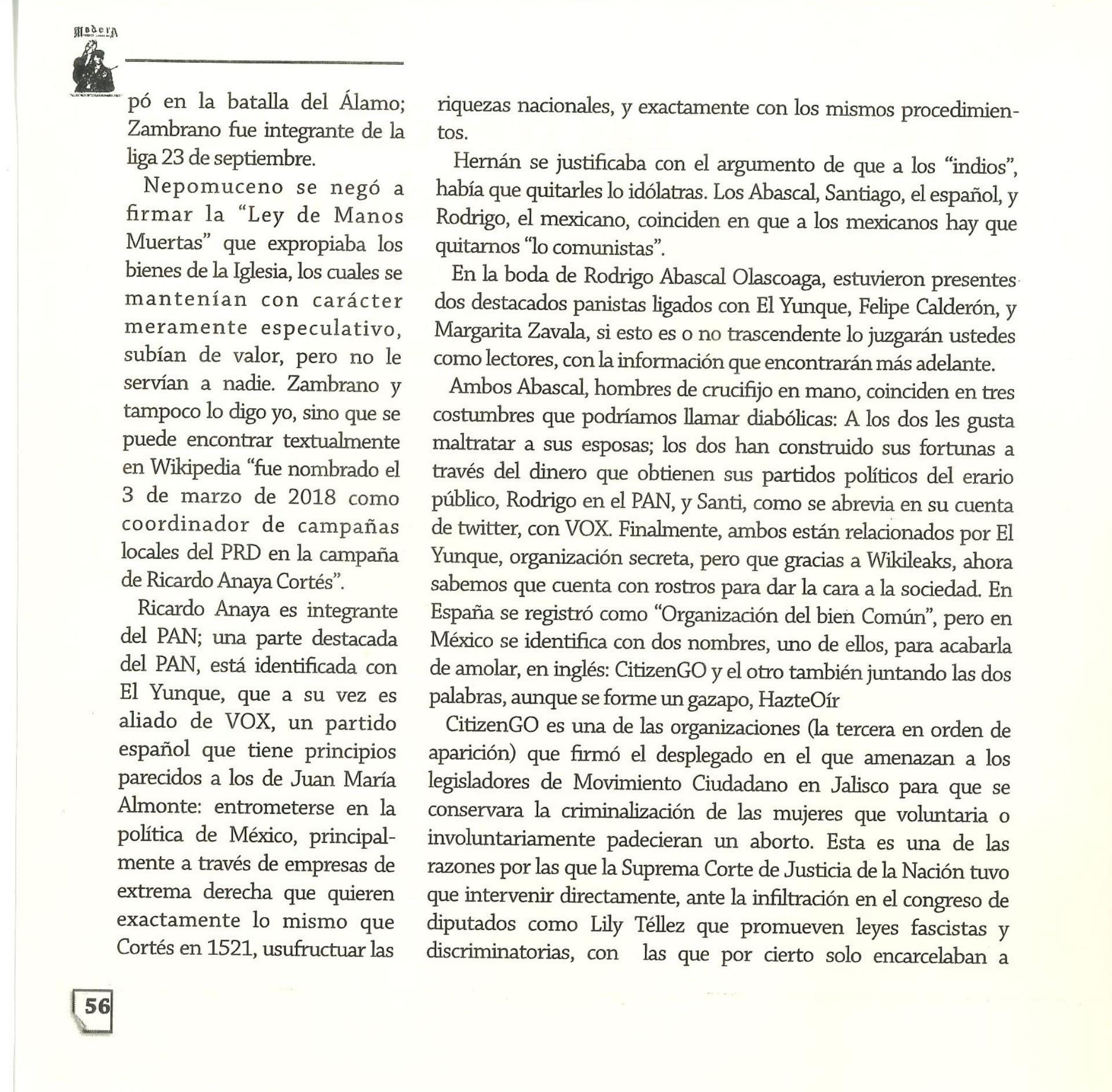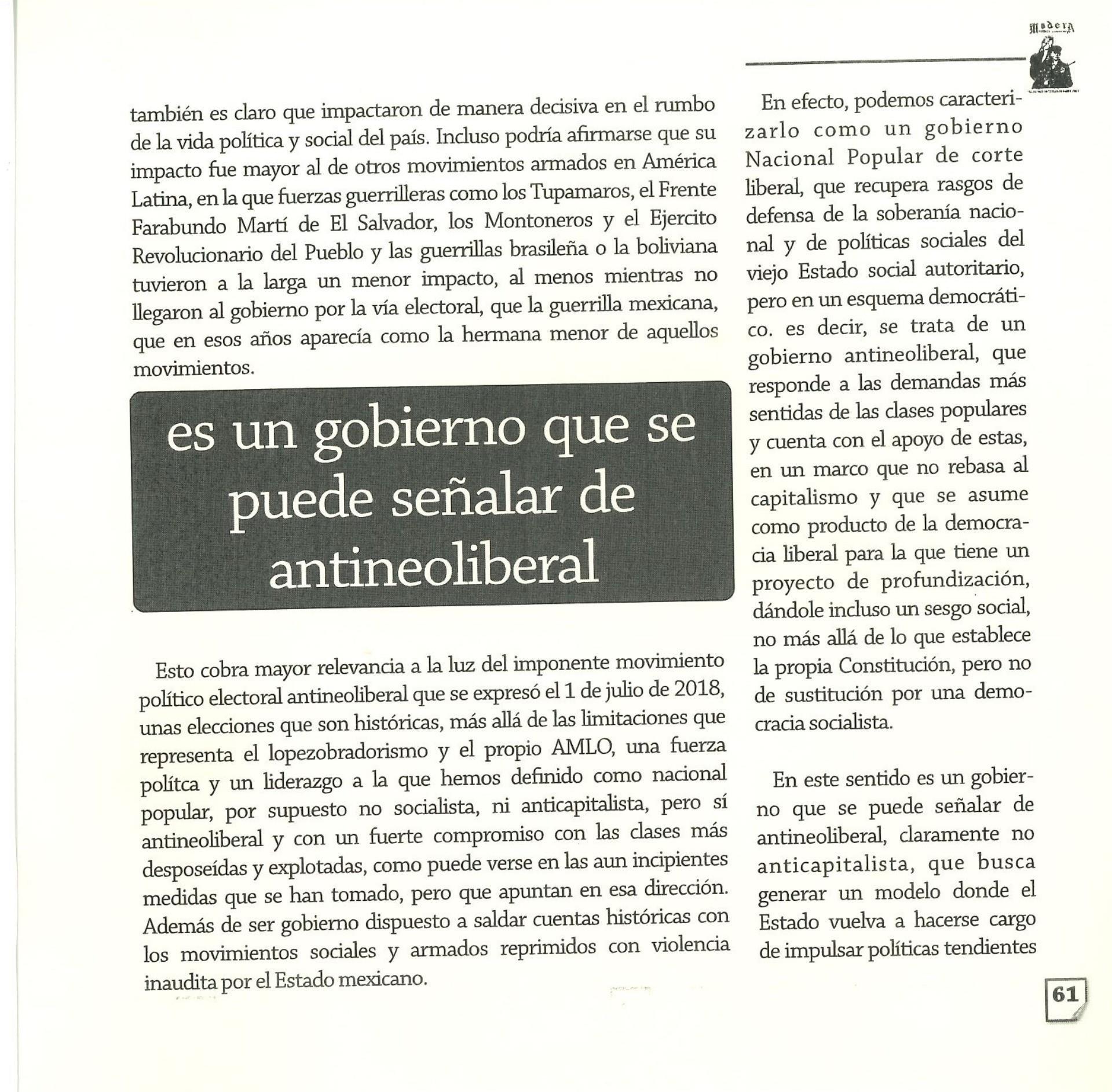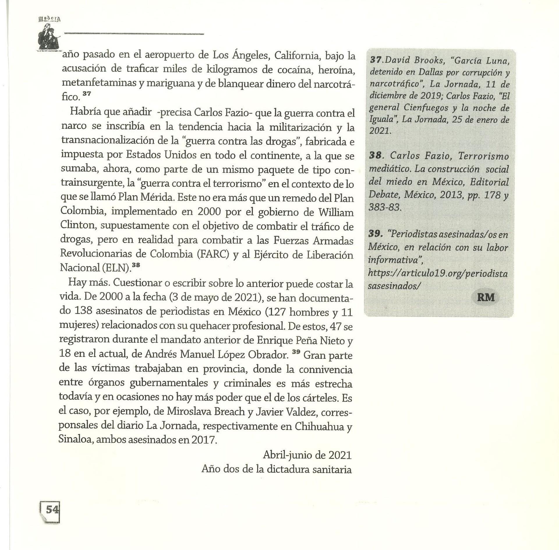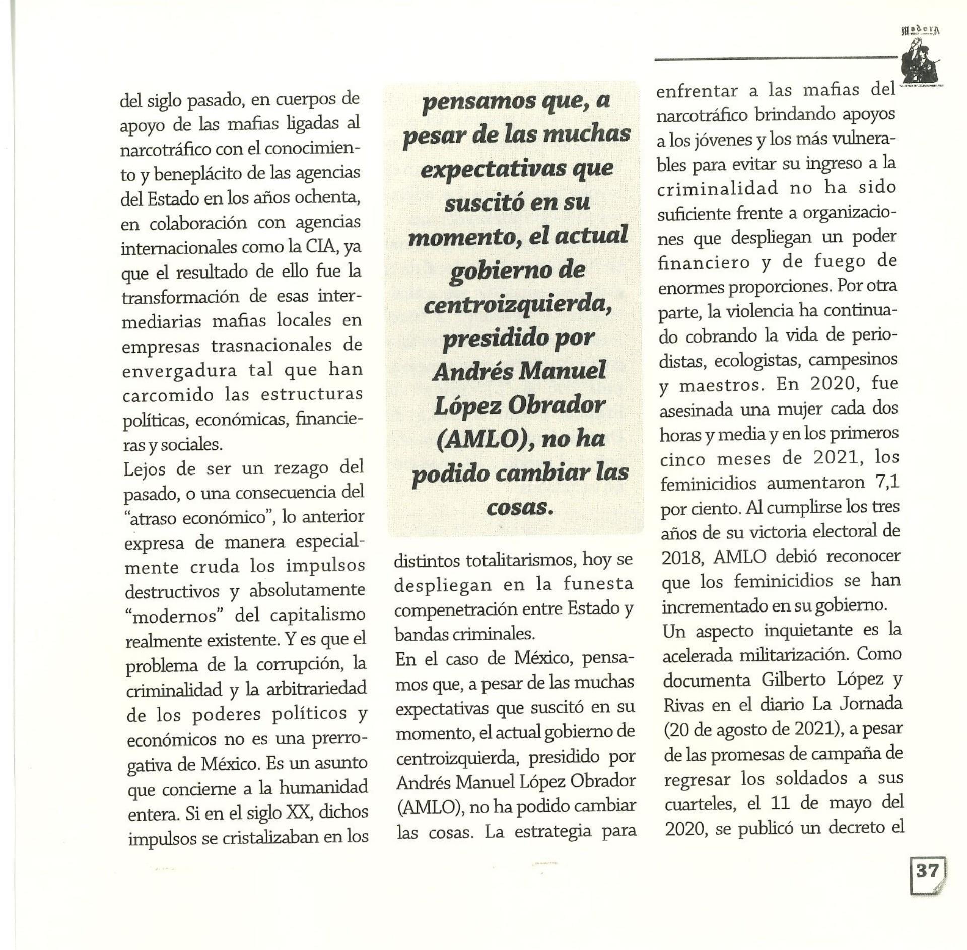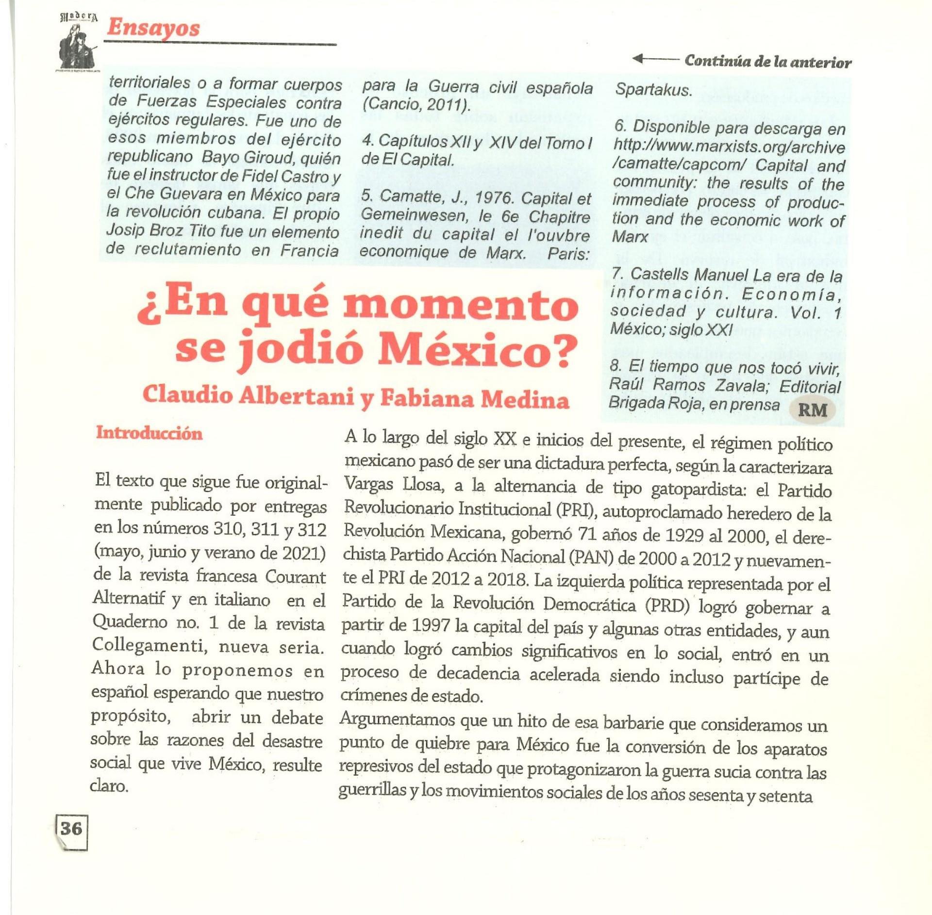 Madera Periódico Clandestino ahora Revista originalmente publicada por la Liga Comunista 23 de Septiembre; ahora por el Grupo del mismo nombre; los artículos son responsabilidad de sus autores en cuento a sus opiniones, nuestro compromiso es contribuir al debate desde la izquierda socialista; ejemplar 1 primer época publicado enero 1974; desde 2009 se publico en portales en internet, ahora a partir de 2022 estará de vuelta impreso