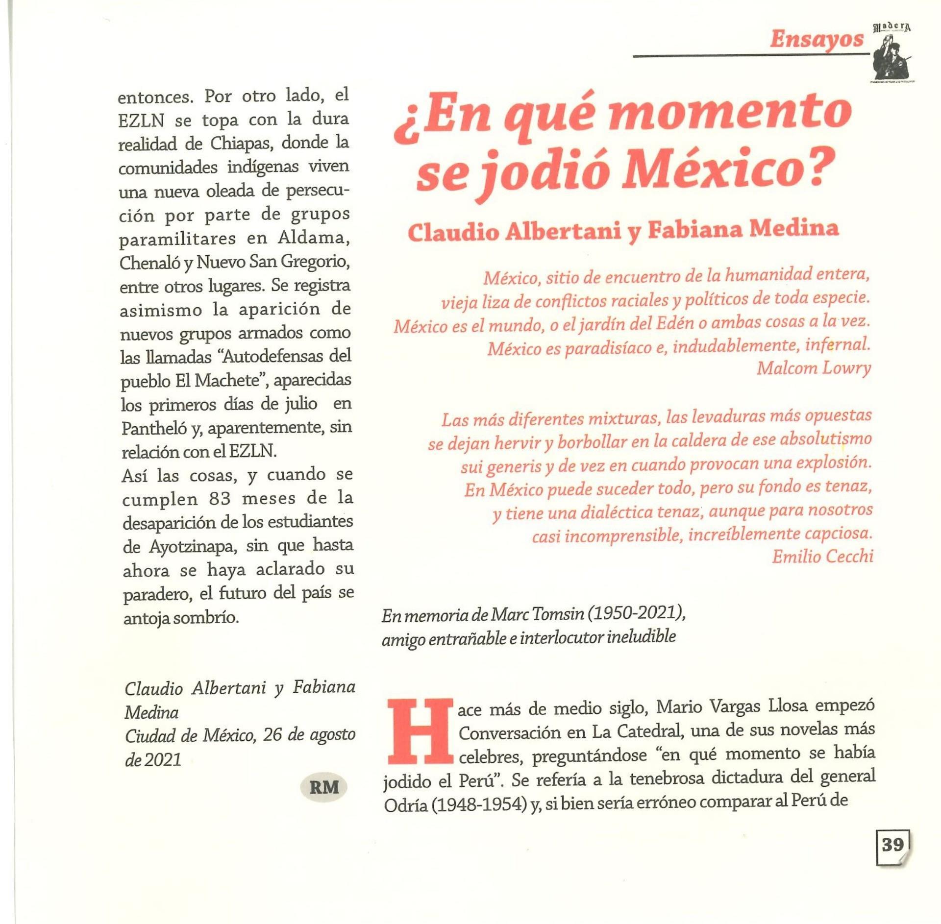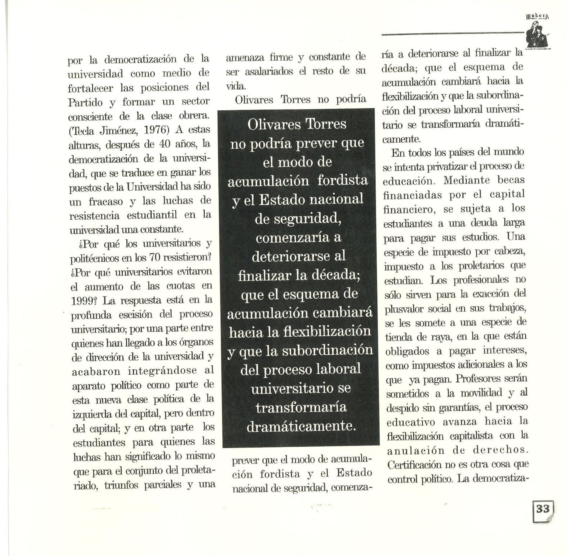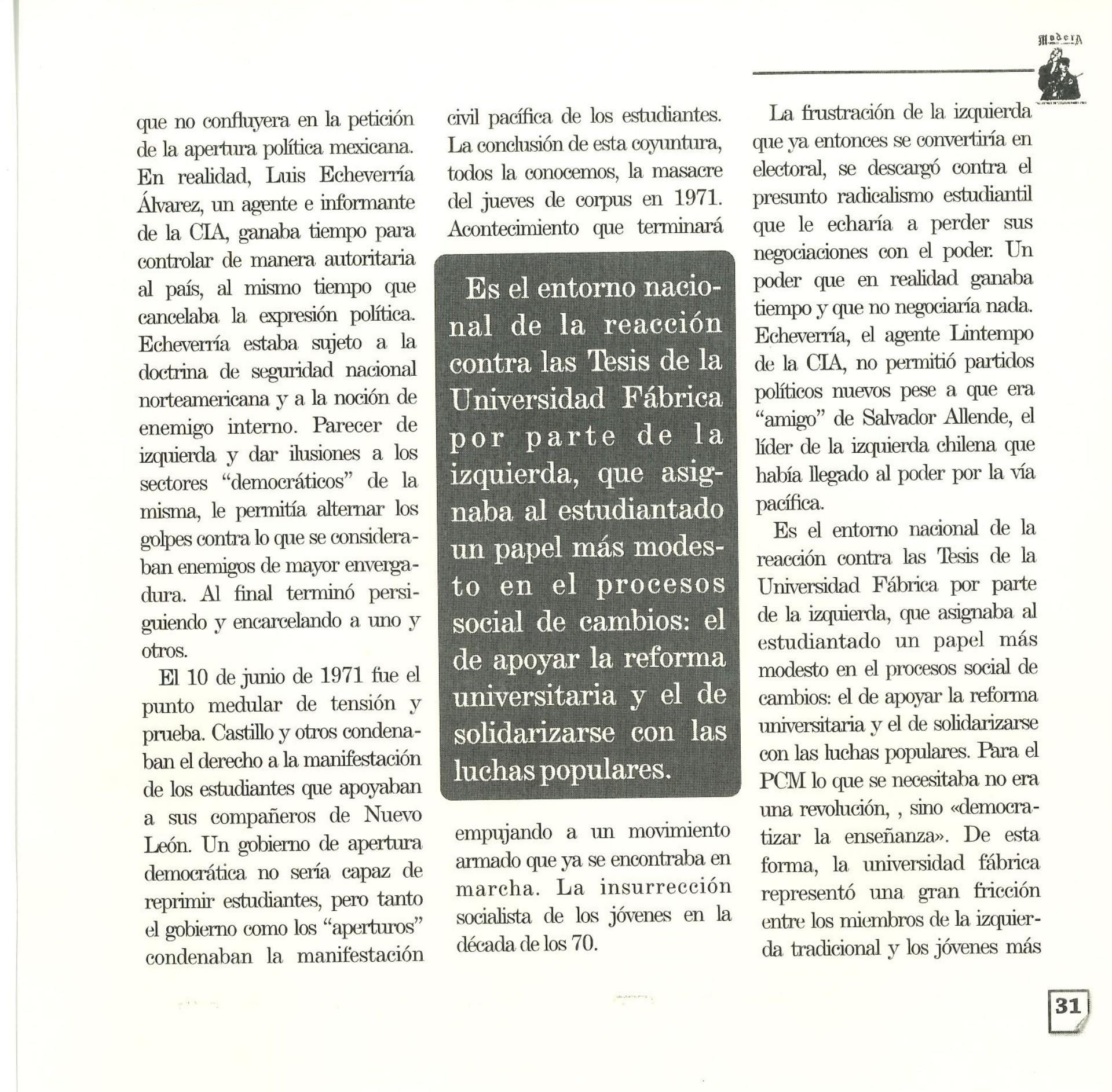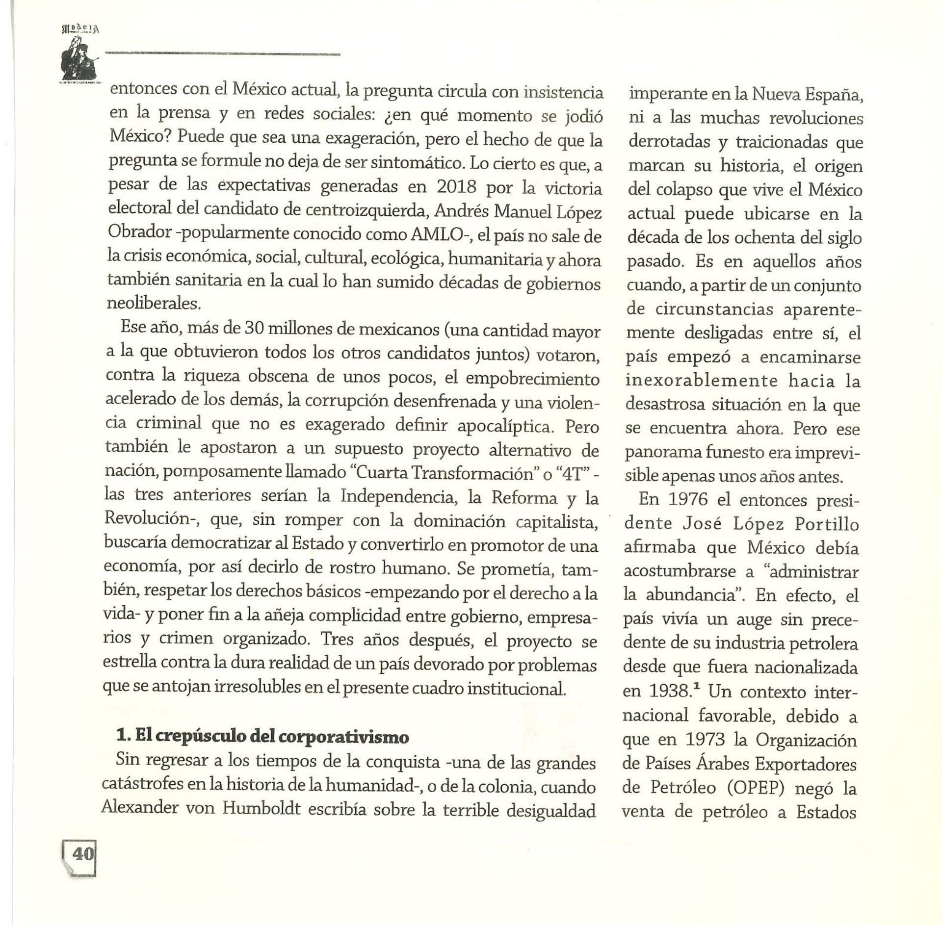 Madera Periódico Clandestino ahora Revista originalmente publicada por la Liga Comunista 23 de Septiembre; ahora por el Grupo del mismo nombre; los artículos son responsabilidad de sus autores en cuento a sus opiniones, nuestro compromiso es contribuir al debate desde la izquierda socialista; ejemplar 1 primer época publicado enero 1974; desde 2009 se publico en portales en internet, ahora a partir de 2022 estará de vuelta impreso