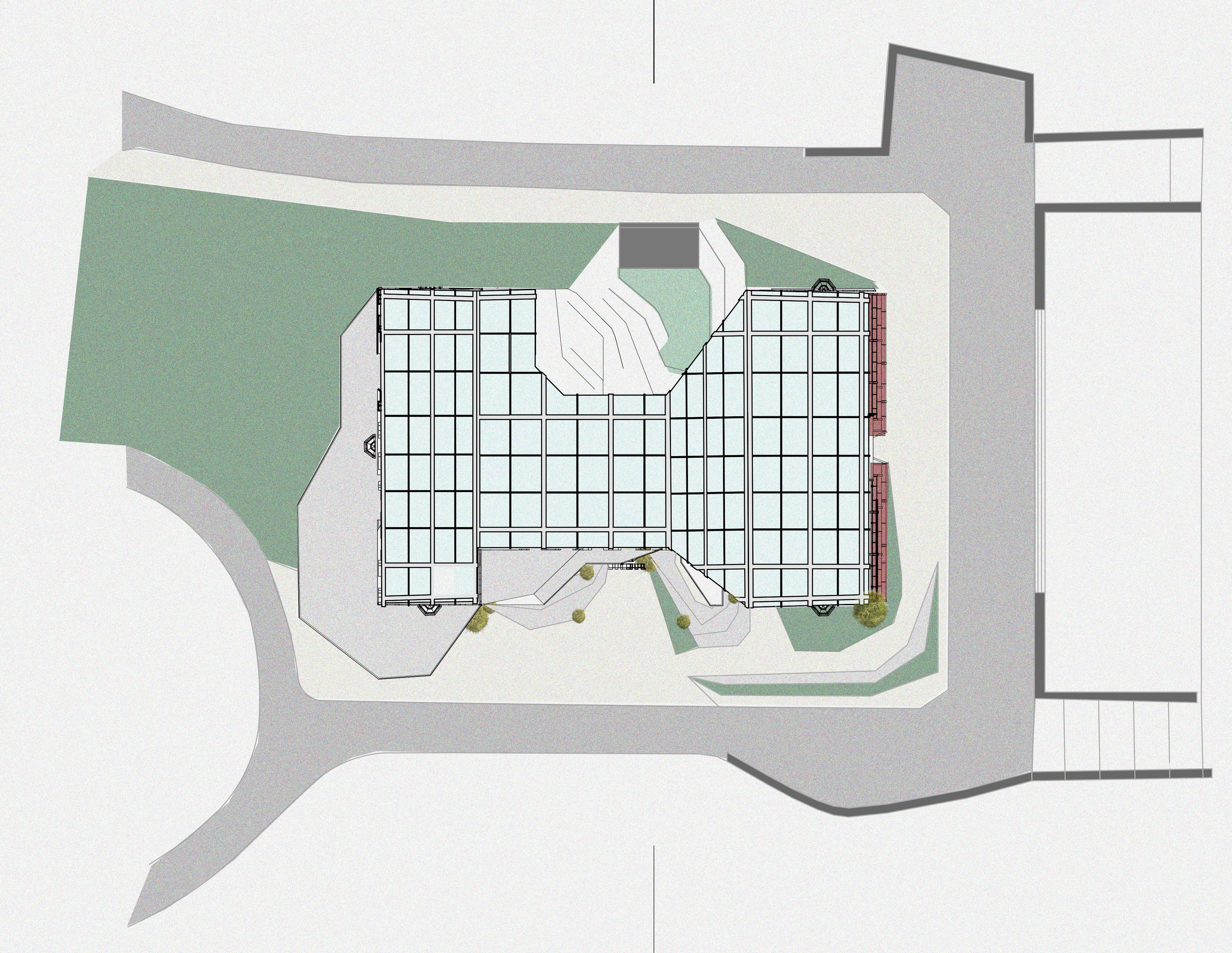 The massing extends beneath the ground, further connecting the site to the building EXCAVATE