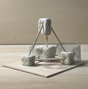 sembly of 3 columns with concrete footings and beams
