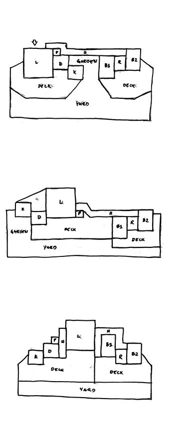The cottage was placed at an angle following the shape of the site while taking into account the site analysis and adjacency studies