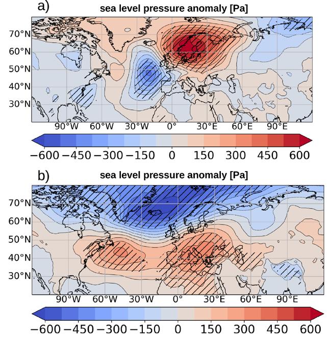 b) air pressure anomaly during marine heat waves during the winter months (December-March) @ IOW