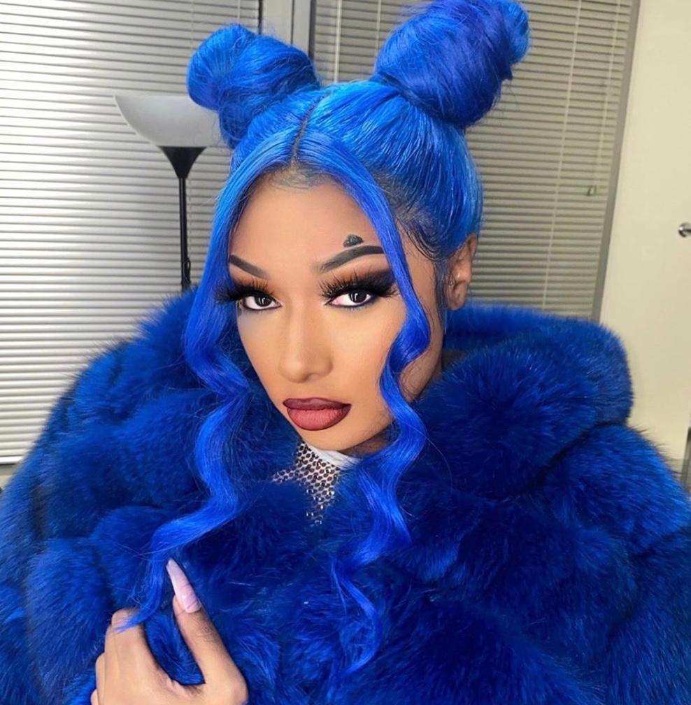 the new trend in hair is giving us the blues! from Chrisean rock to megan the stallion, celebrities are embracing the blue hues and giving the winter hair season justice! #hairspotlight #streetlovemagazine