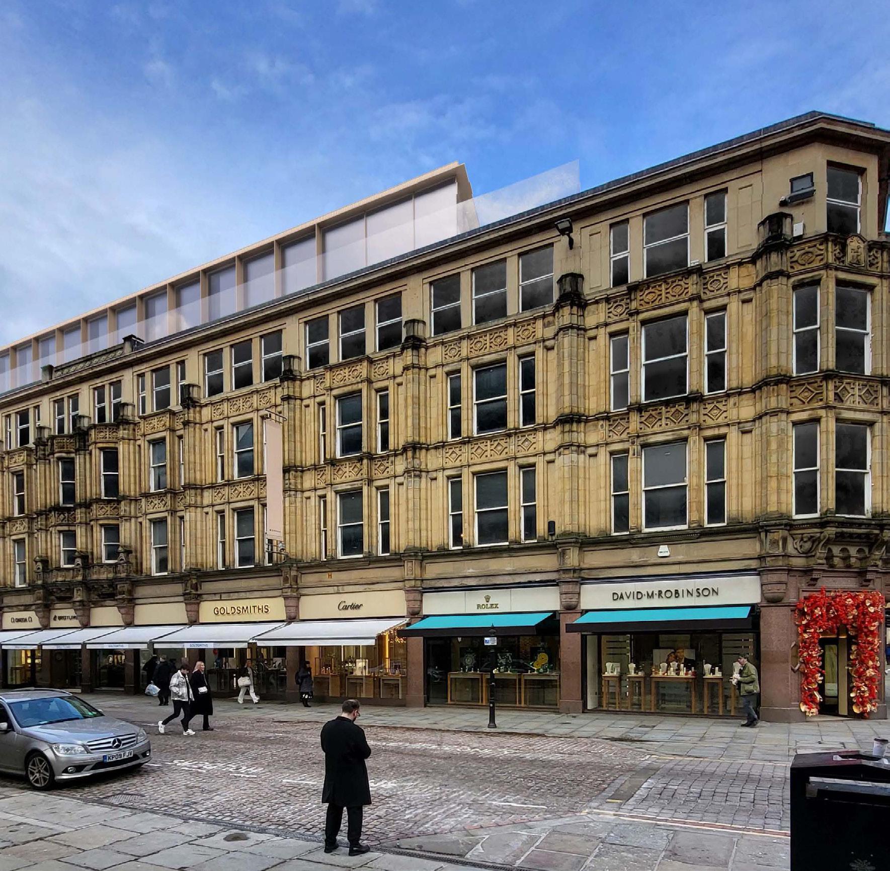 Conversion of the upper floors of a former department store in Manchester’s commercial district to residential apartments, including a roof extension to form a penthouse apartment.