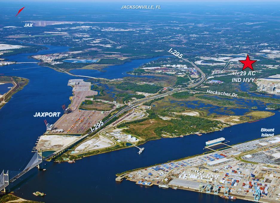 A prime 29-acre Industrial Heavy (IH) zoned site just 1.5 miles from JAXPORT and 2.5 miles from Blount Island, with ~820 ft of frontage on Blasius Road. City water, sewer, and electric (JEA) are in place, with potential rail spur/CSX access. Leasehold improvements include an ~11,700 SF off-warehouse facility with a fenced, stabilized yard for container, truck, and heavy equipment storage. Ideal for distribution, warehouse, truck terminal, manufacturing, or cold-storage uses.