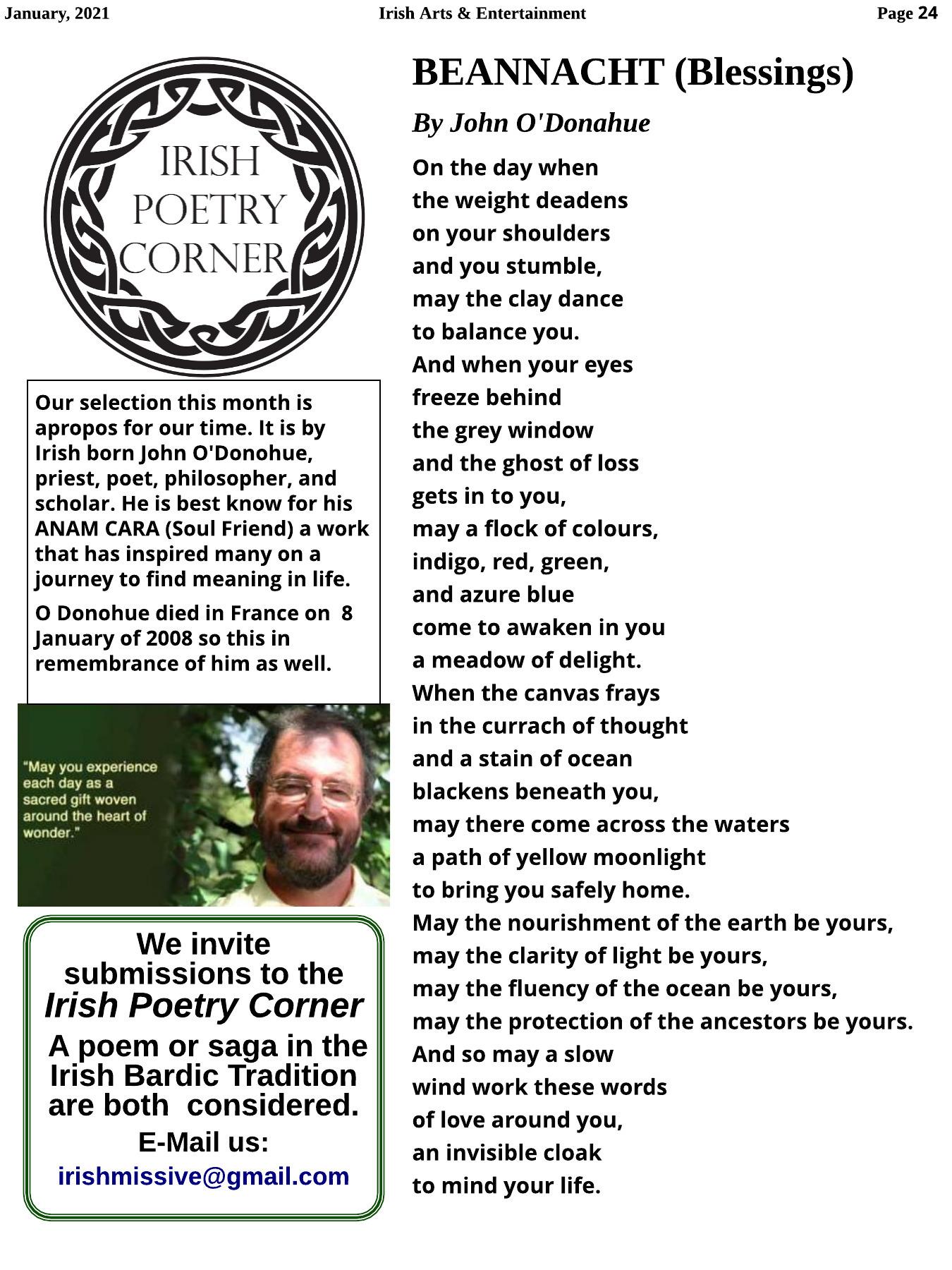 Links & List ings Want ed Send t o irishm issive@gm ail.com or t hrough our w ebsit e: w w w.irishart sandent ert ainm ent .com
