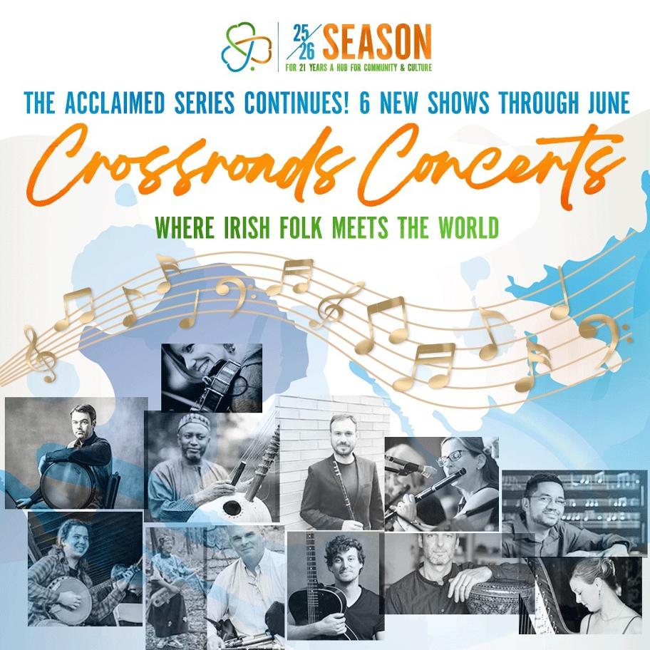 The CrossroadsConcertsseriesis an acclaimed world music program hosted by the New York Irish Center. The concertsare curated by ethnomusicologist Colin Harte, the seriesfocuses on "Irish Fusion," blending traditional Irish folk music with diverse global musical traditions. The 2026 season featuressix distinct fusion concerts, all held at the New York Irish Center in Long Island City. Concert Date s~ Fusion Theme and Featured Performers