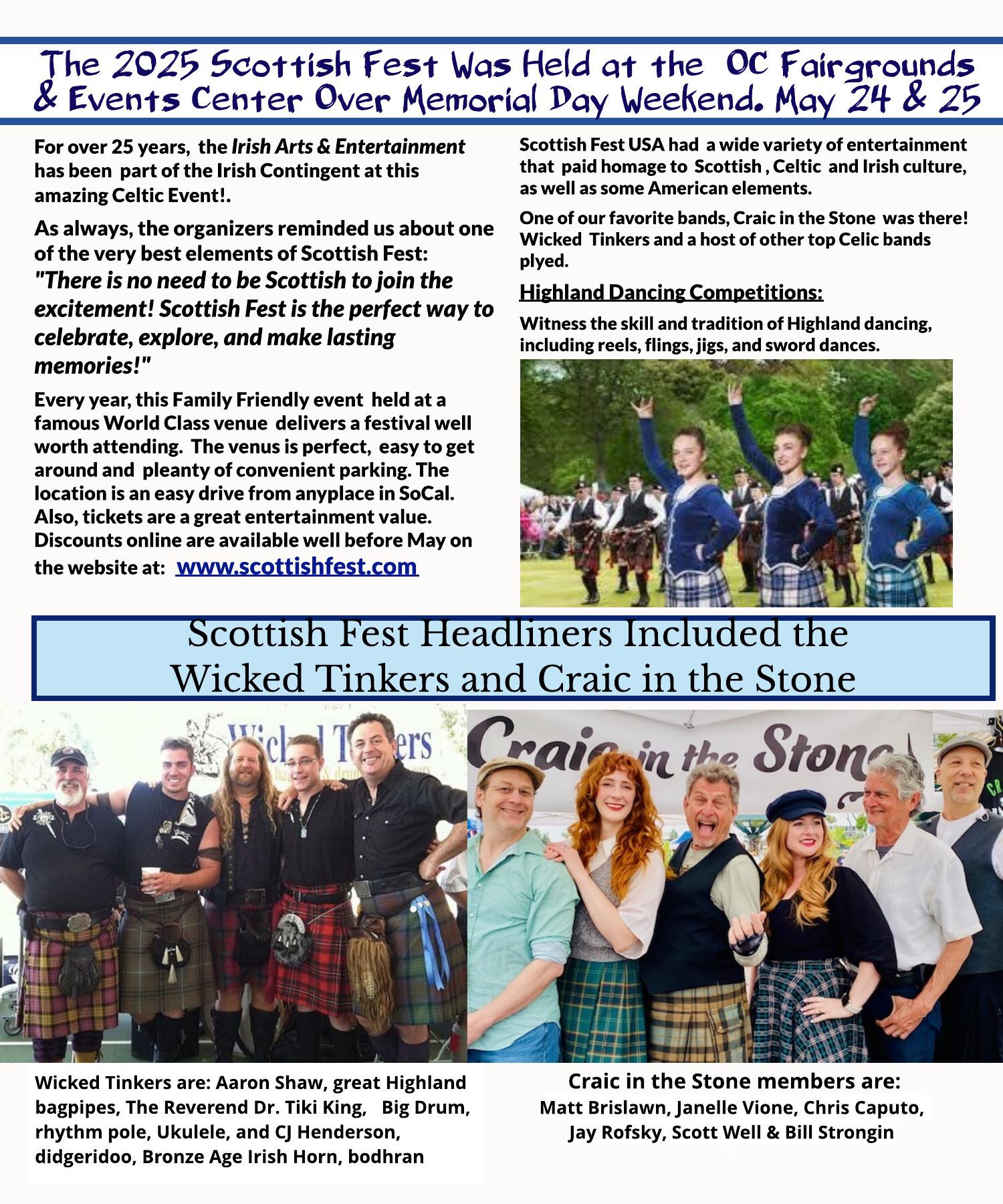 The Pandemic and subsequent societal turmoil set us all back a bit in one way or another and we are rebuilding our VIP benefitspackage. We were counting on discounts and dealsat pubs and eventsbut that plan isnow on the back burner as there are fewer Irish eventsand pubsin SoCal now. We need volume to make the discounts practical. In the meantime, we are working hard to line up new offersfor our subscribers We have some very good deals and 2 for 1 offersthat are exclusive for our subscribers!