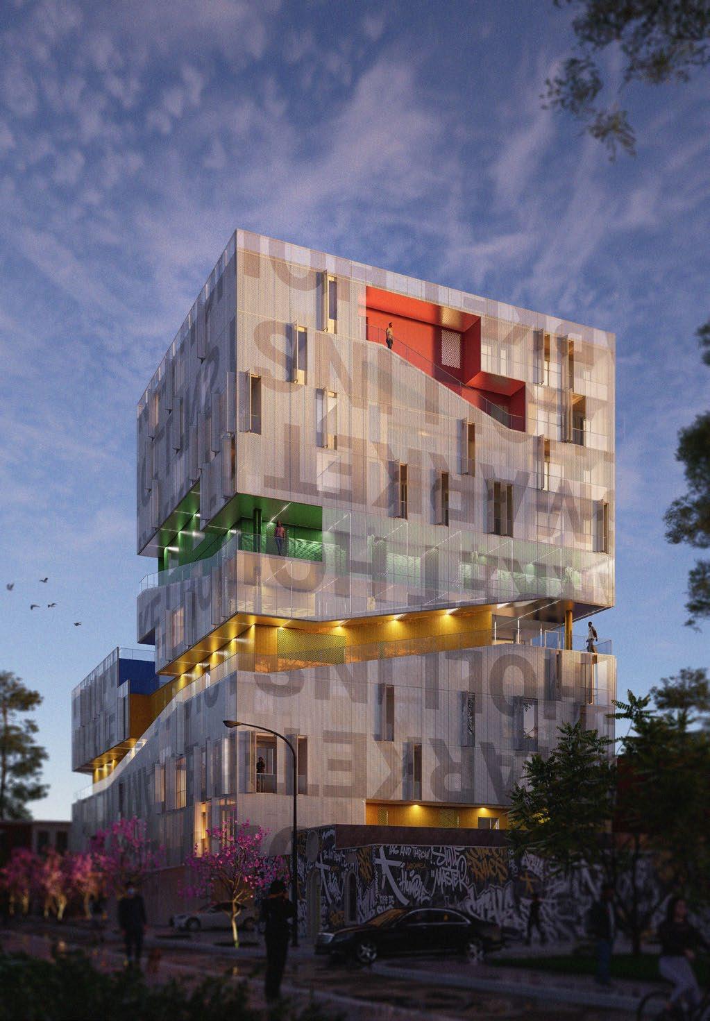 This innovative 86-unit apartment complex, integrating educational and retail spaces, is designed to be universally accessible. Its expansive open terraces blend seamlessly into the city’s public spaces, supporting community activities such as festivals, exhibitions, and farmers' markets.