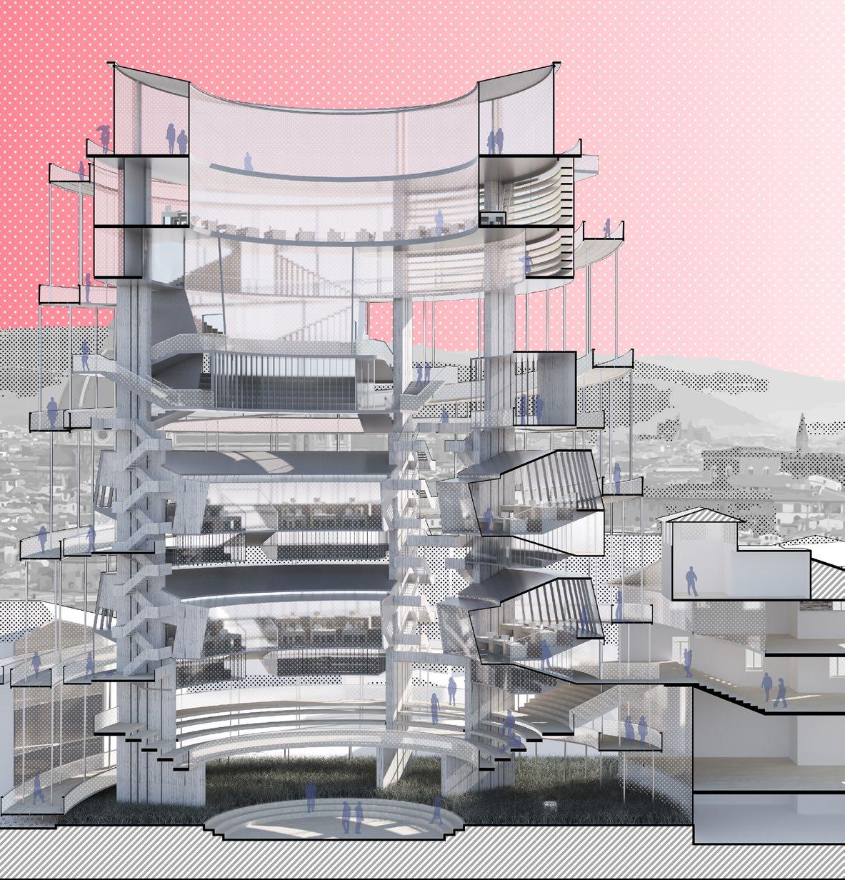 A new architecture school is proposed in Florence’s historic city center, adjacent to SU Florence’s Villa Rosa, a century-old Neoclassical mansion. Inspired by the typology of traditional Italian architecture, the design merges the structural openness of an amphitheater with the symbolic presence of a classical dome—creating a multi-layered, transparent space that stands as a contemporary landmark, much like Duomo in old Florence.