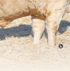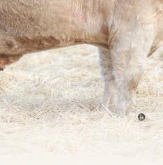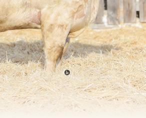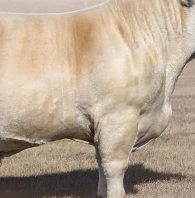 20M is the biggest framed bull on o er. Standing on a large square foot, the foundation for longevity is set. We acquired the Dam RPJ 516C along with several other cows from Perrot-Martin Charolais in 2023. We will leave 516C open after she calves this spring and ush her. 20M’s Maternal sister RPJ 820F is one of our front end donor cows.