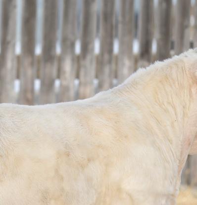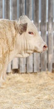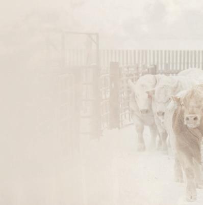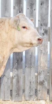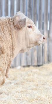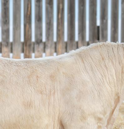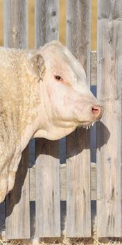 is marks our family’s 43rd year breeding purebred Charolais cattle. Being part of the Charolais breed for 4 generations, you will inevitably develop a type. For us, this has resulted in breeding cattle that excel in a low input commercial environment without sacri cing in terms of performance. Our philosophy is, you can work for your cattle, or they can work for you. Being a mixed farming operation puts a signi cant emphasis on the prerequisite for cattle to thrive in a setting that doesn’t focus solely on them. Currently, our farming and ranching operations are split 50/50. With a cow herd consisting of 90% commercial, red Simm/Angus females, the remaining 10% consisting of purebreds. e majority of our commercial cows will be bred to Charolais bulls from our program. Buy with con dence knowing the commercial cow business is our business too.