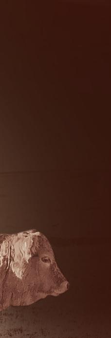 Although our purebred division is small in numbers, you will nd merit through the consistency of this o ering. As we all know, consistency and uniformity sells, when it comes time to market your calf crop. Improvement is incremental. We have made a conscious e ort to re ne our cowherd, lowering birth weights and increasing vigor at birth, without sacri cing weights in the fall. e majority of our purebred herd is spring calving, focused on producing 2yr old bulls. Our spring calving division is not creep fed, and is managed no di erently than our commercial herd. e weights as printed are what you can expect from calves sired by these bulls. In addition to the 2yr olds, we have a select o ering of yearling bulls to choose from. Whether you’re targeting performance, calving-ease, or red factor, we have bulls to meet your needs.