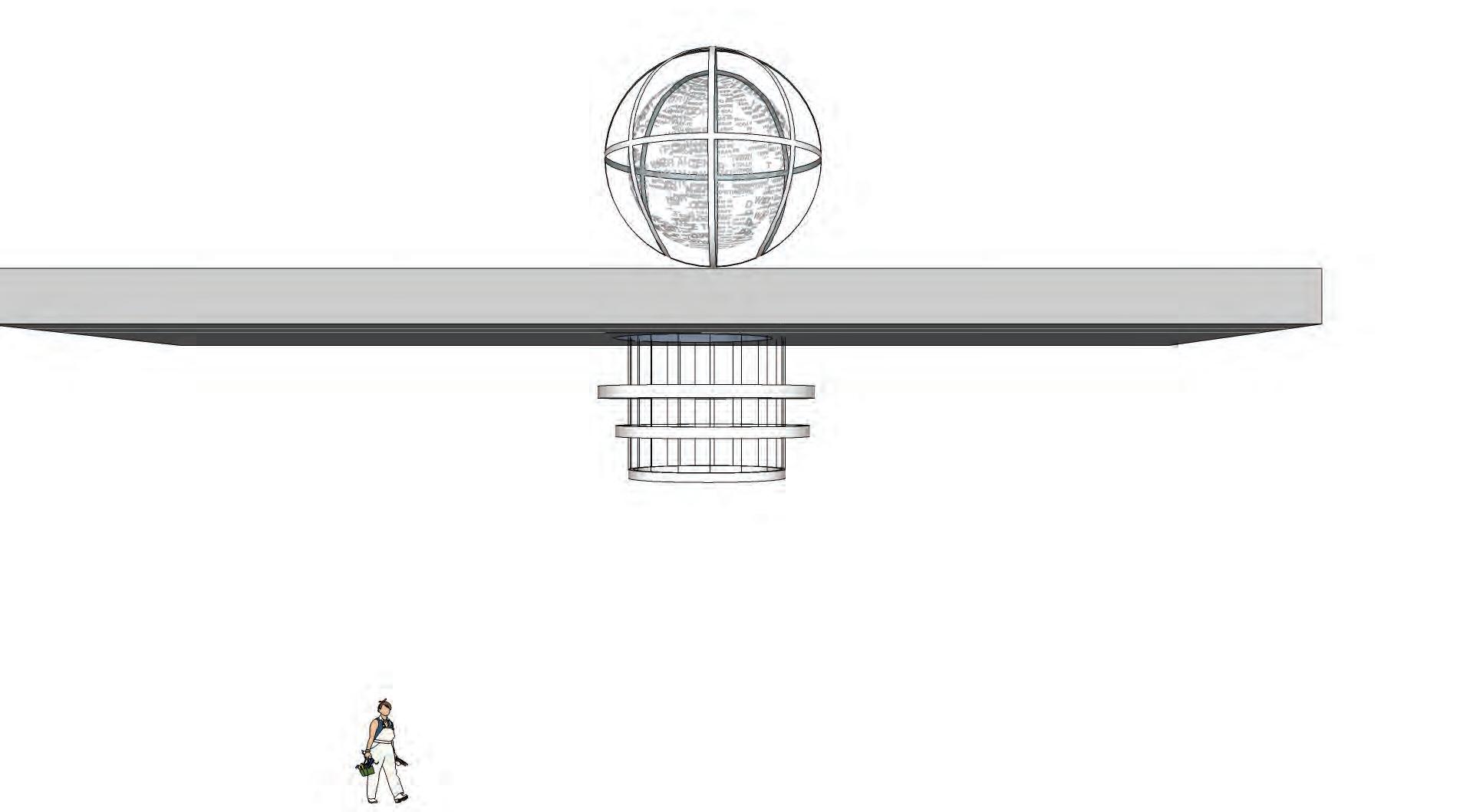 Layered ball sculpture exhibits the sleek and modern style of the newly renovated Target Center. It represents the simplicity of the basketball form while also being very uniquely tied to the Target Center brand.