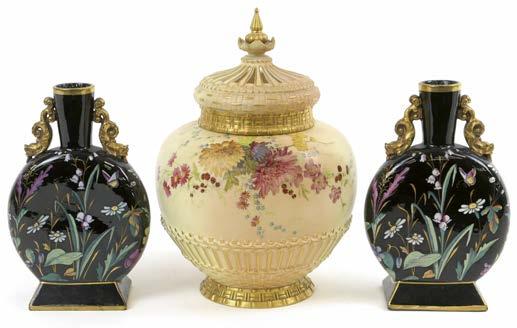 23 Royal Worcester pot pourri jar and cover, circa 1899, baluster shape decorated with foliate sprays in colours against a peach ground, complete with interior cover, height 30.5cm