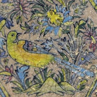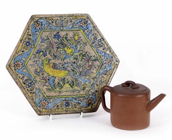 20 Qajar decorated hexagonal tile, centred with a bird amidst foliage within a blue wavy floral border, 28.5cm £70 - £100 plus 25% BP*