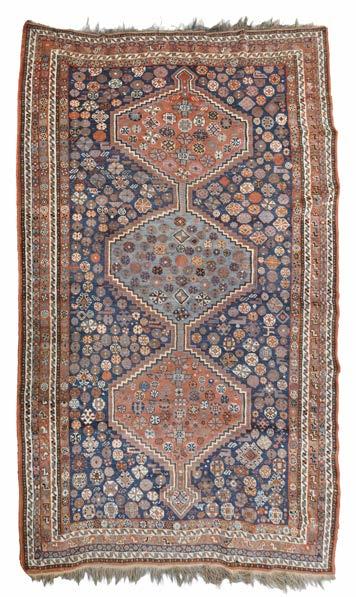 265* Carpets. A large Oriental Bochara woollen carpet, 20th century, with repeating medallions within geometric borders on a red ground, with kilim weave ends, 310 x 160 cm, together with two further Oriental woollen carpets, including a Bidjar carpet, with repeating geometric decoration within a multi-banded border on a blue ground, 320 x 215 cm (3)