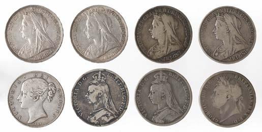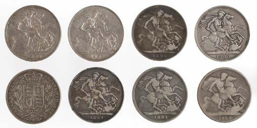 535* Victoria (1837-1901). Crown, 1895, silver coin, old head obverse, St. George & the dragon reverse, LIX edge, very fine, together with an 1895 silver crown, St. George & the dragon reverse, very fine, plus 6 further silver crowns, comprising 1822, 1844, 1889, 1891, 1895, 1900, variable condition but mostly worn (8)