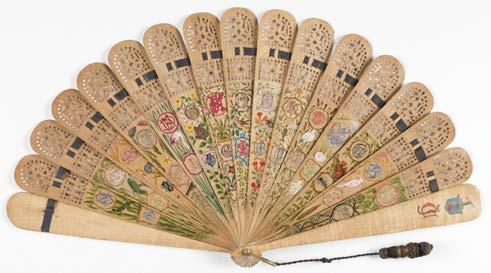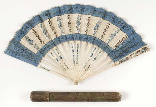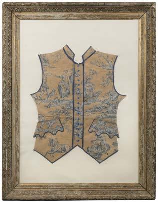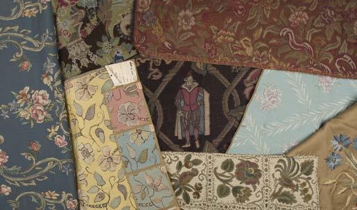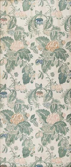 286* Fabric. A large framed portion of silk brocade (possibly Spitalfields) from the wedding dress of Ann Middleton née Harrison, late 18th century, woven in peach, blue, and green, on a cream ground, with a repeating pattern of large clusters of flowers, seedheads, and berries, some toning and light staining, 96.5 x 40 cm (38 x 15.75 ins), framed (108 x 51.5 cm), backboard with framer’s printed label ‘F. Casson, 20, Bond Street, Hull’, and several manuscript labels and annotations relating to provenance, together with a printed family tree tracing the line of descent