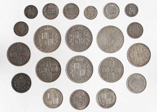 537* Victoria (1837-1901). ‘Godless’ Florin, 1849 (2), together with Florin (2), obverse with ‘Gothic’ bust, 1878, 1880, Half Crown (4), 1875, 1886, 1887,1899, Shilling (5), 1865, 1878, 1887 (2), 1899 and other Victorian coins, variable condition (21)