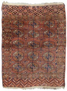 266* Carpets. An Oriental Teke Bochara woollen prayer rug, 20th century, with repeating medallions on a red ground with a geometric border, 128 x 100 cm, together with three further prayer rugs, including a Bochara, 20th century, with repeating medallions within a multi-banded border on a red ground, 122 x 91 cm (4)