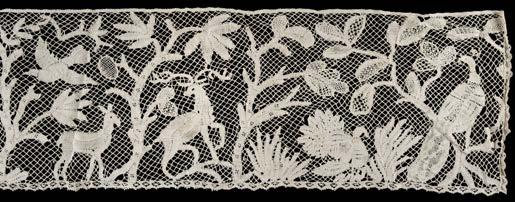 An attractively-framed and well-preserved 17th century embroidery with unusual trompe-l’œil design.